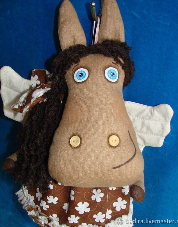 Эта лошадка-ангел хорошо "повиснет" на крючке, гвозде, ручке двери, мебели "хозяина", родившегося в Год Лошади!