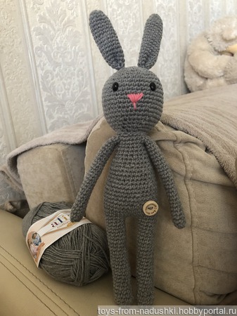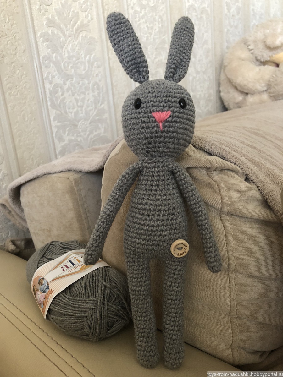 Мягкий серый зайка, связанный с любовью из хлопковой пряжи. Глазки у зайки безопасные, наполнитель холофайбер. Все материалы натуральные и гипоаллергенные.