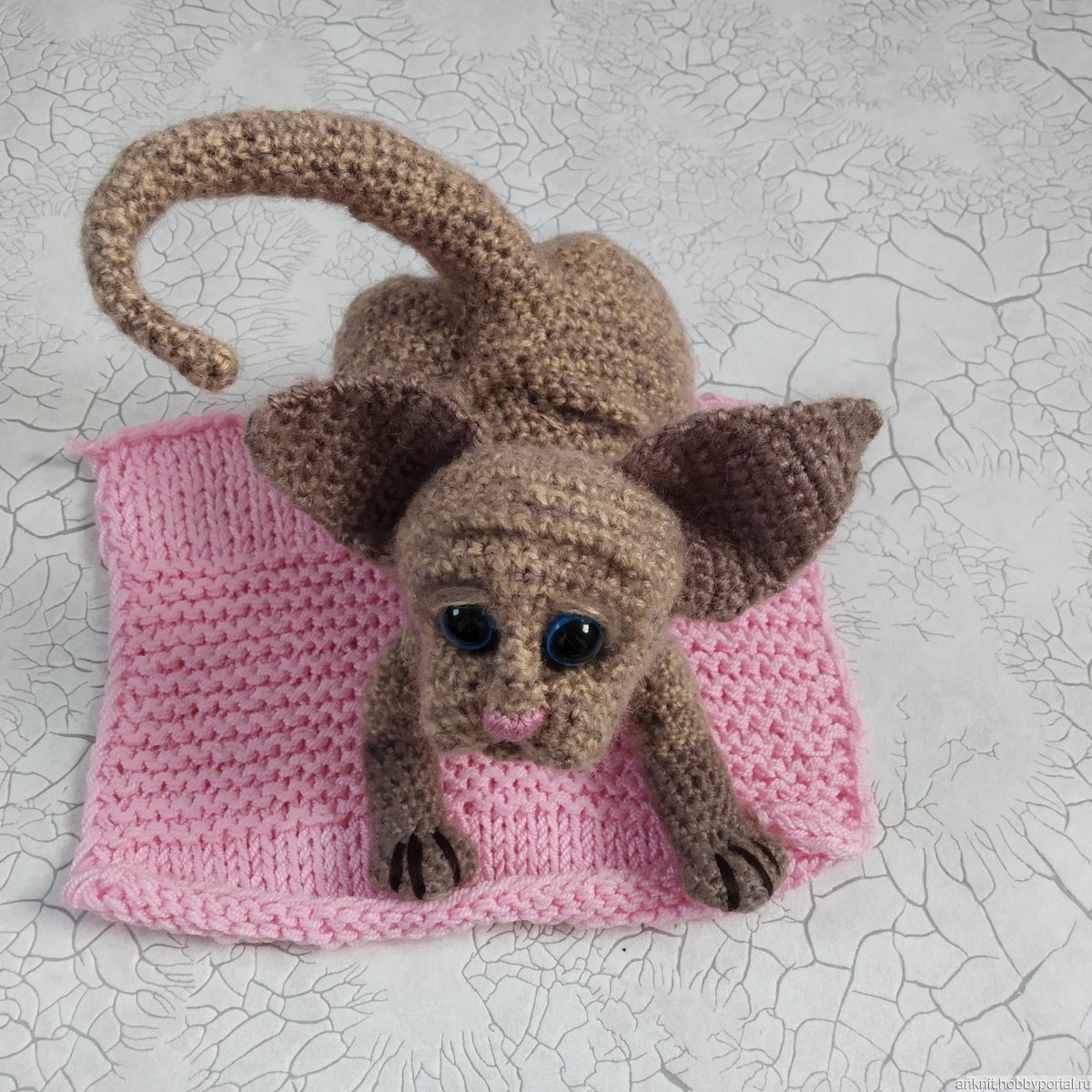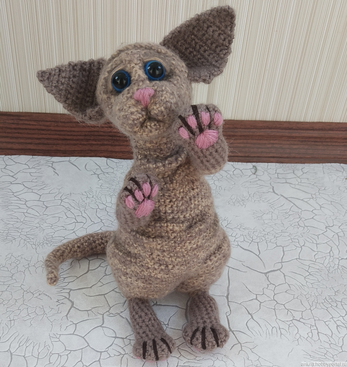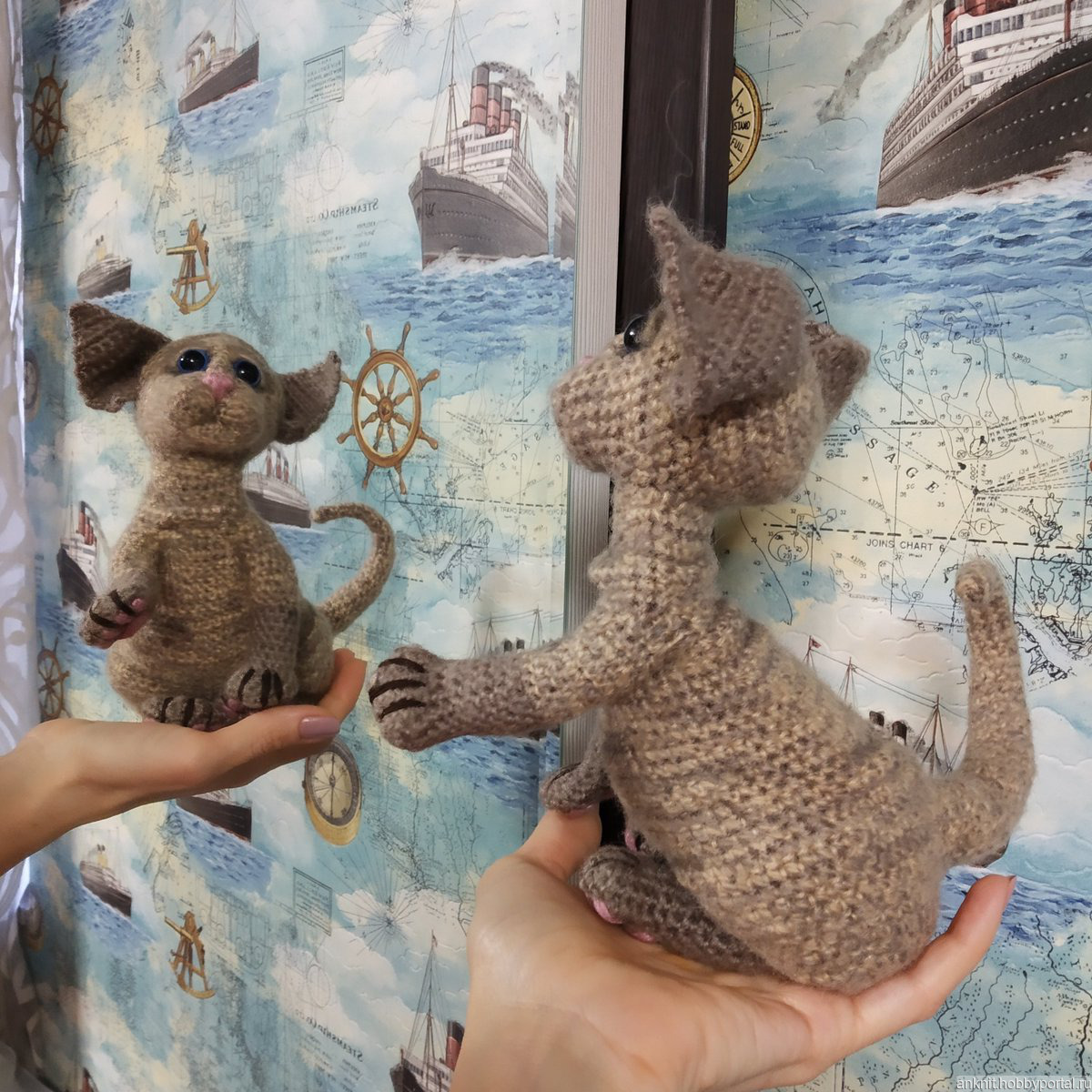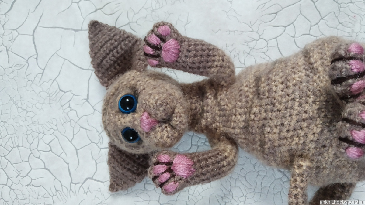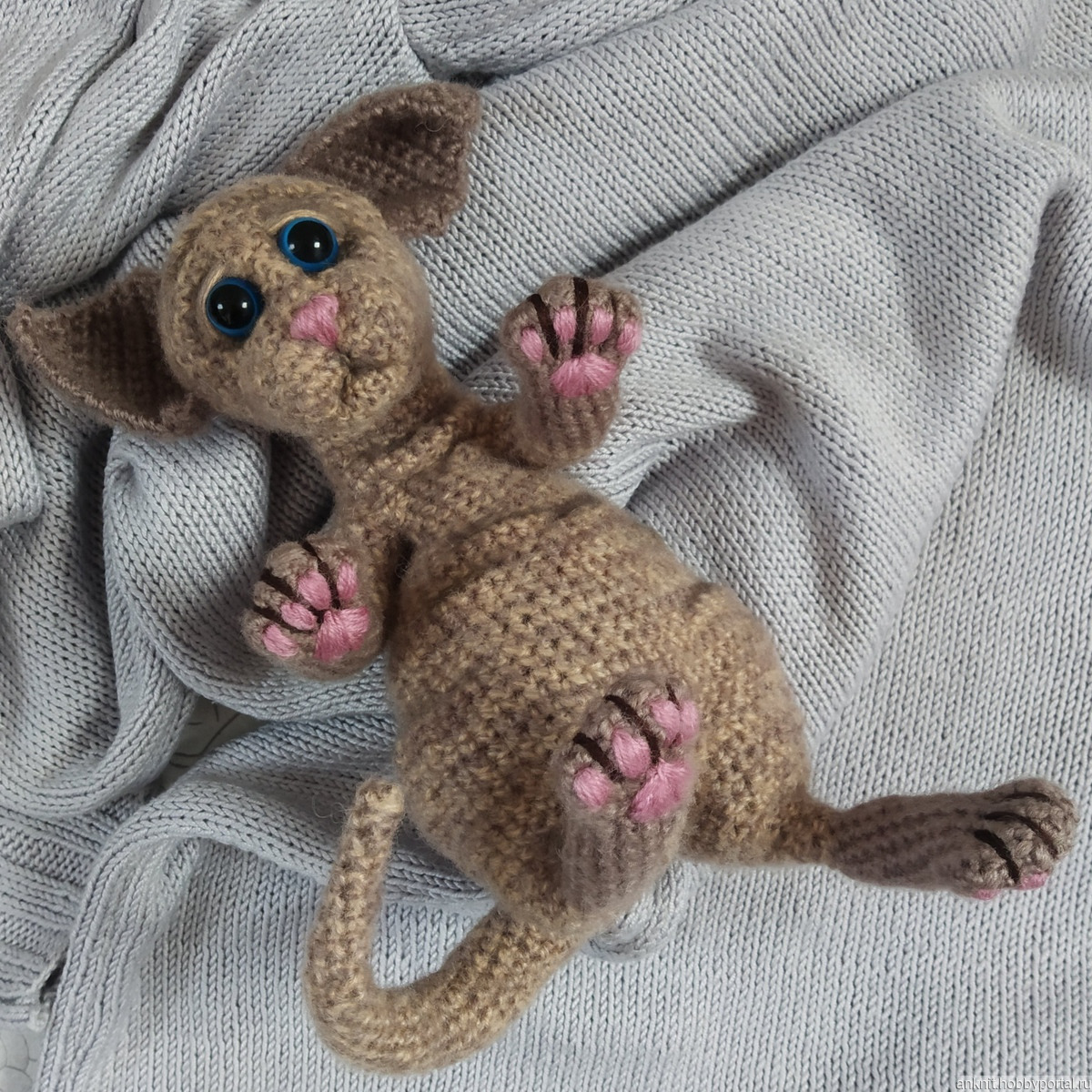 ручная работа, вязаный кот крючком, вязаные животные, вязаные игрушки, сфинкс, каркасная икрушка