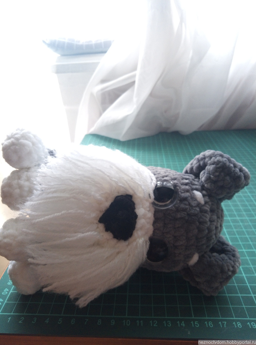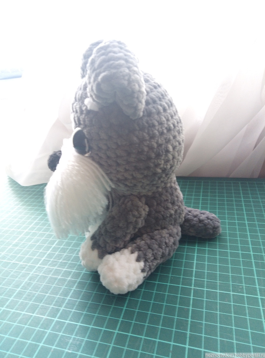 Связан из велюровый пряжи, наполнитель холлофайбер, глазки пластиковые на безопасном креплении.