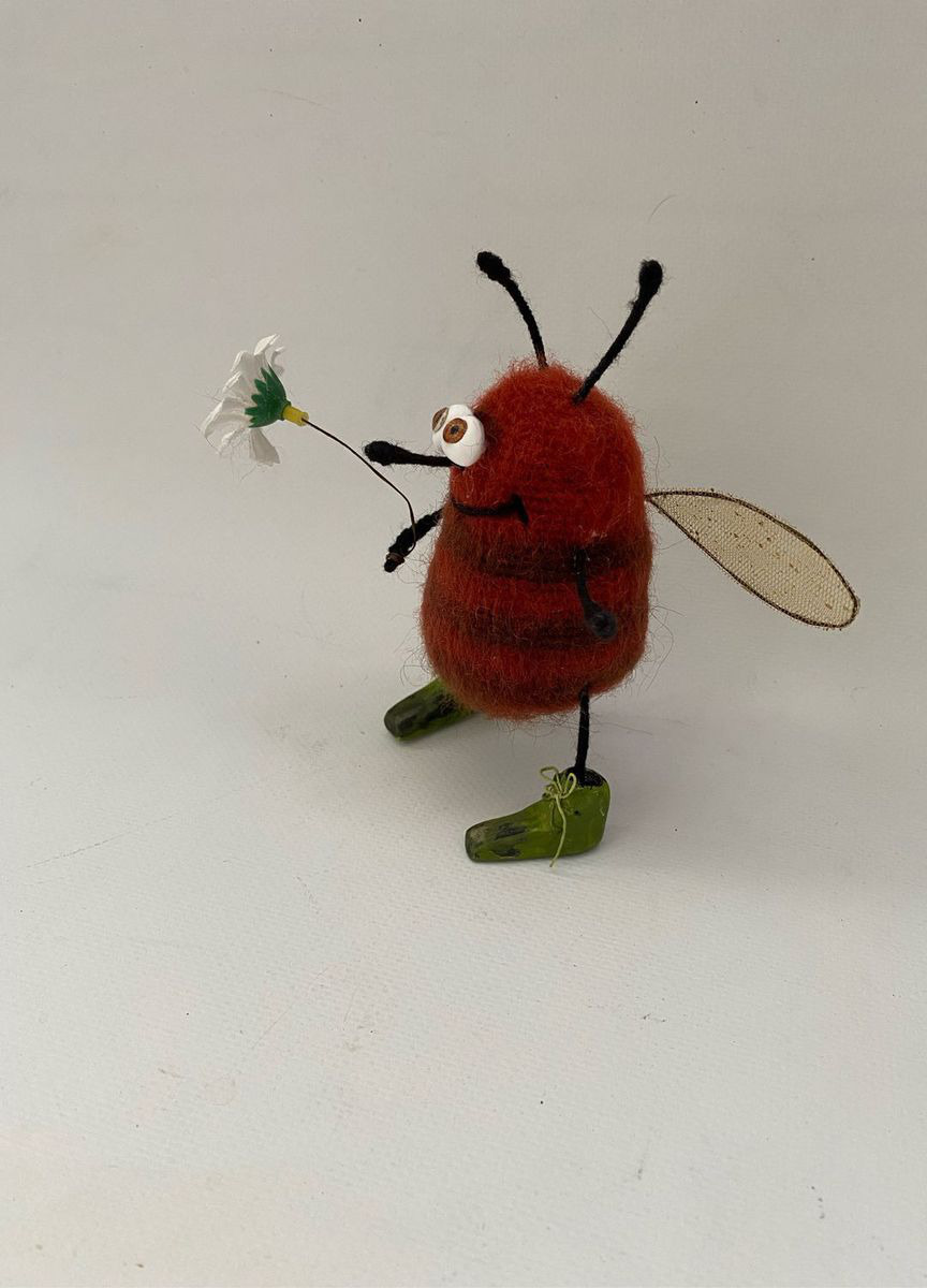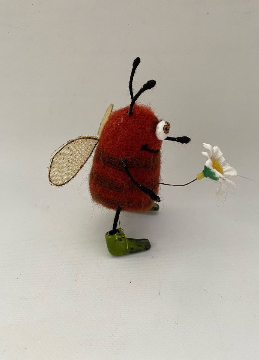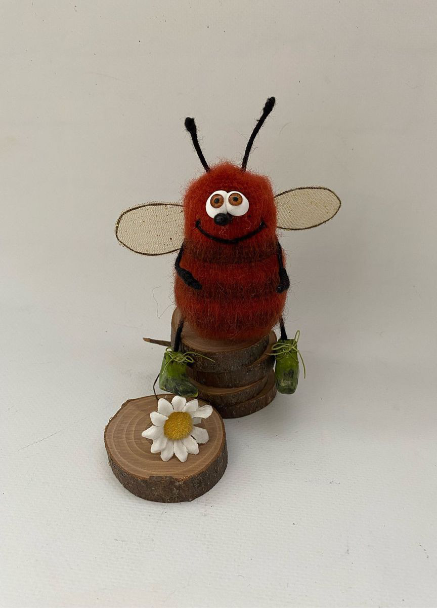 Веселый шмеленок жужжит и улыбается несмотря на погоду. Для повышения настроения будет стоять у вас на столе и радовать глаз.