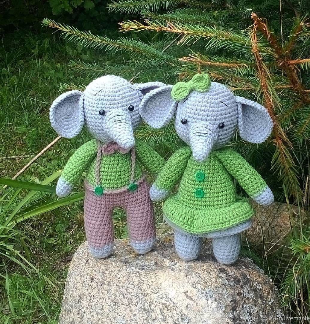 игрушка крючком, ручная вязка, темно-зеленый, слоник, игрушка своими руками, слоник крючком