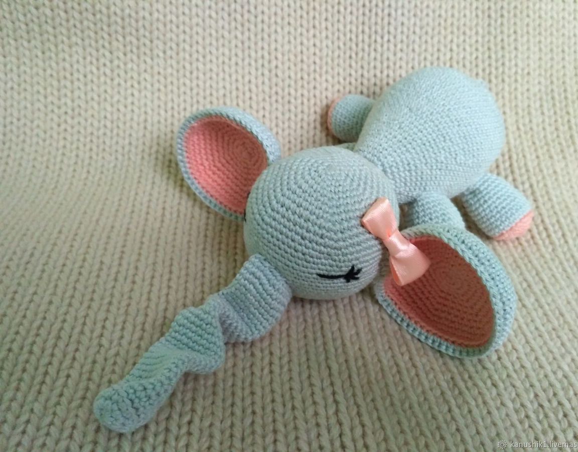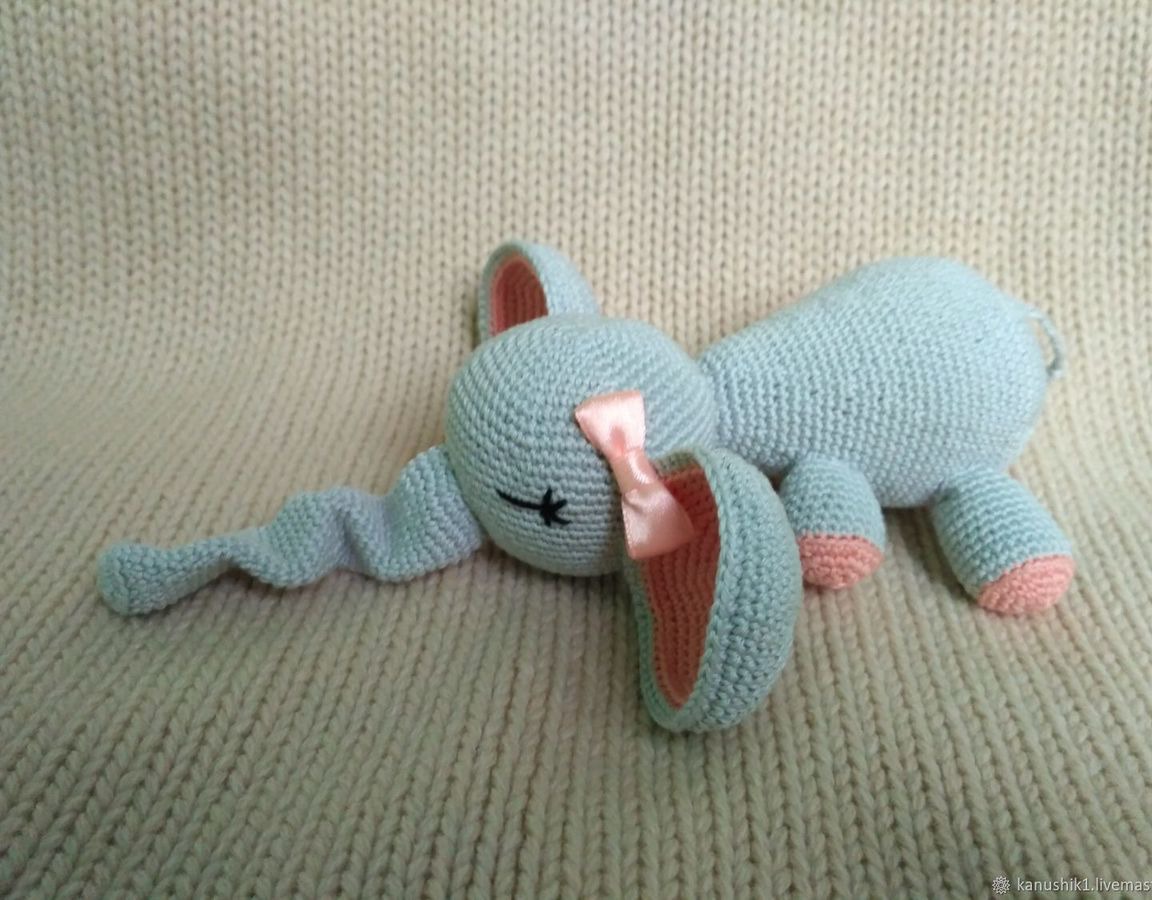 Слоник сплюшка, Вязаная игрушка. Мягкая и приятная. Бантик пришит, есть хвостик. Цвет игрушки по вашему желанию. Оформление возможно разное. Бантики, цветочки, хохолки для слонов-мальчиков. Желайте, обсудим. Так же возможна подарочная упаковка.