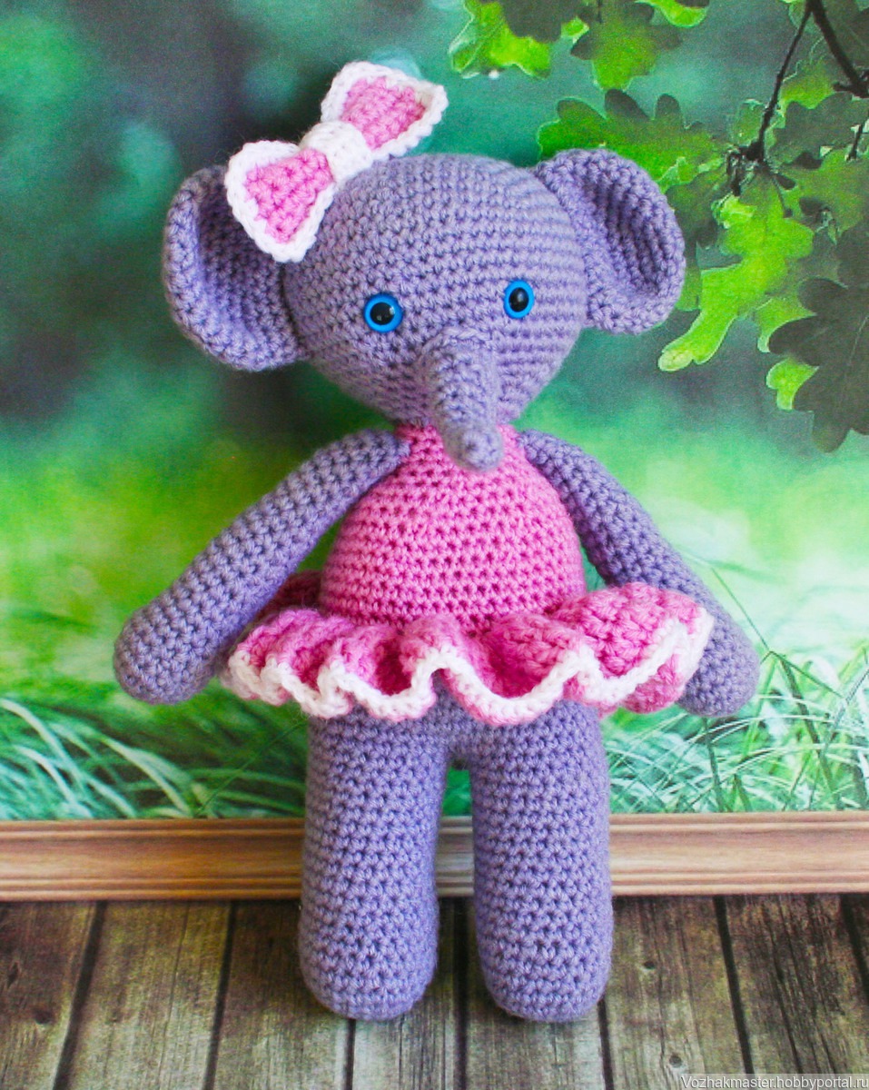 серый, игрушка ручной работы, подарок, детям, амигуруми, игрушка крючком, розовое платье, слоник