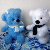 Вязаные крючком из фактурной пряжи медведики, голова, лапки подвижны.