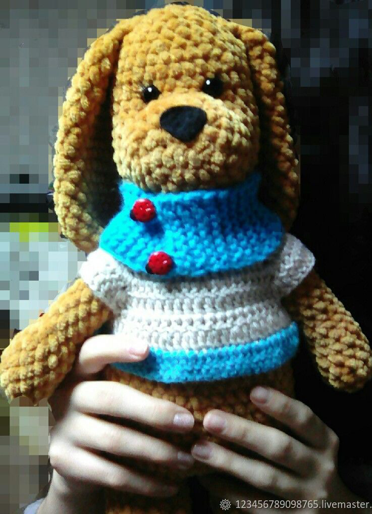 игрушка ручной работы, игрушка для ребенка, собака игрушка, собачка вязаная, собачка в подарок, плюшевая собака