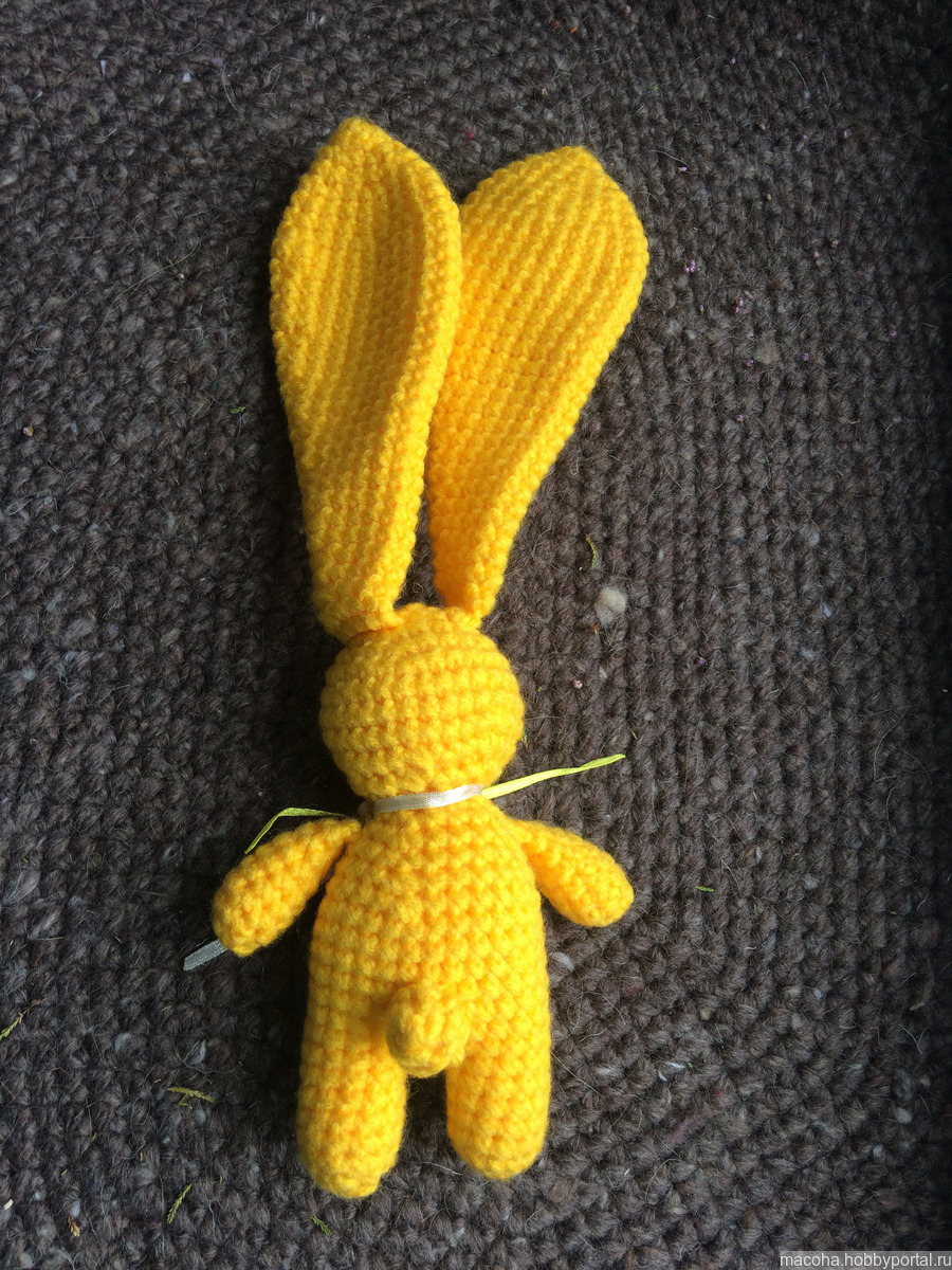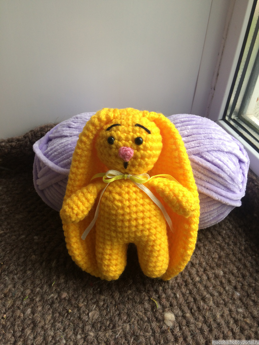 Солнечный зайка - рост 14 см. без ушек с ушками 30 см. , пряжа высокообъемный акрил, наполнитель синтепон, глазки на безопасном креплении