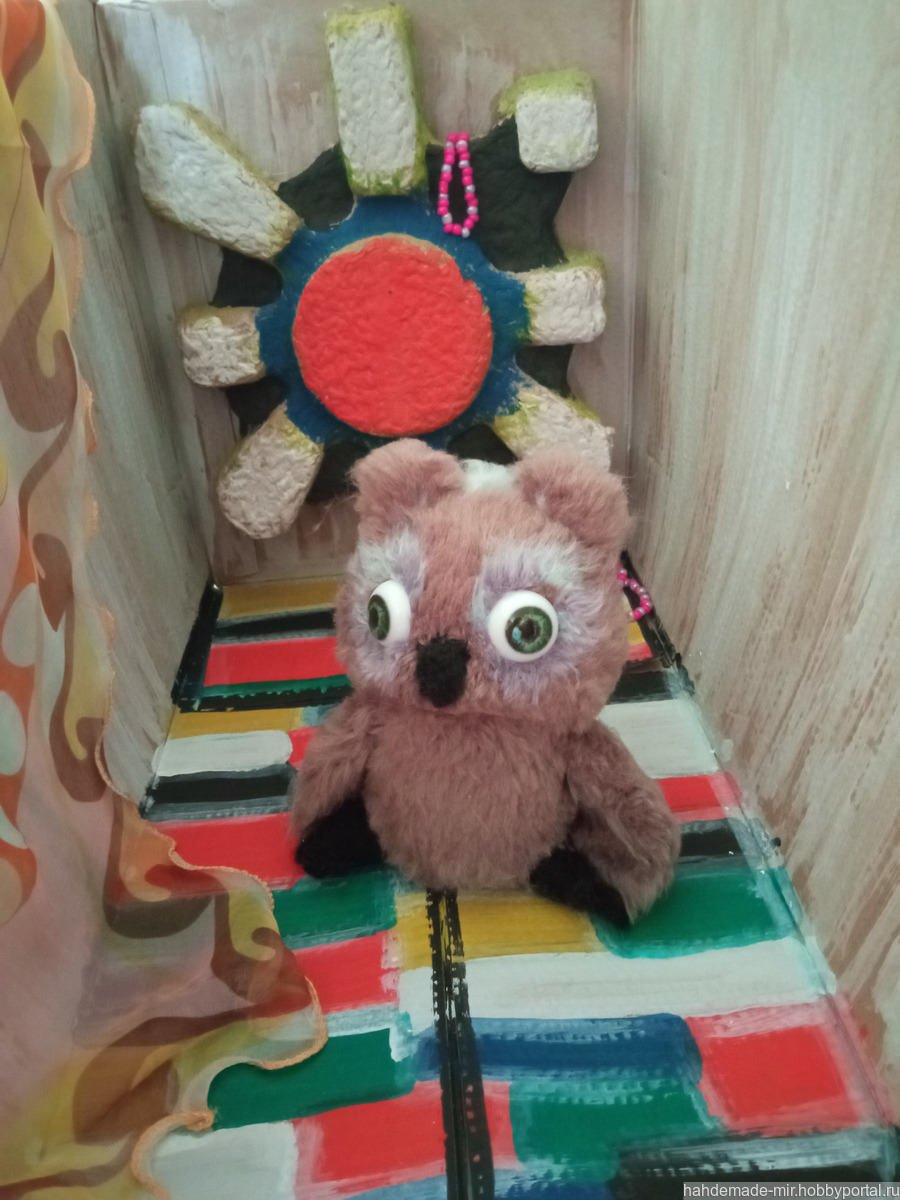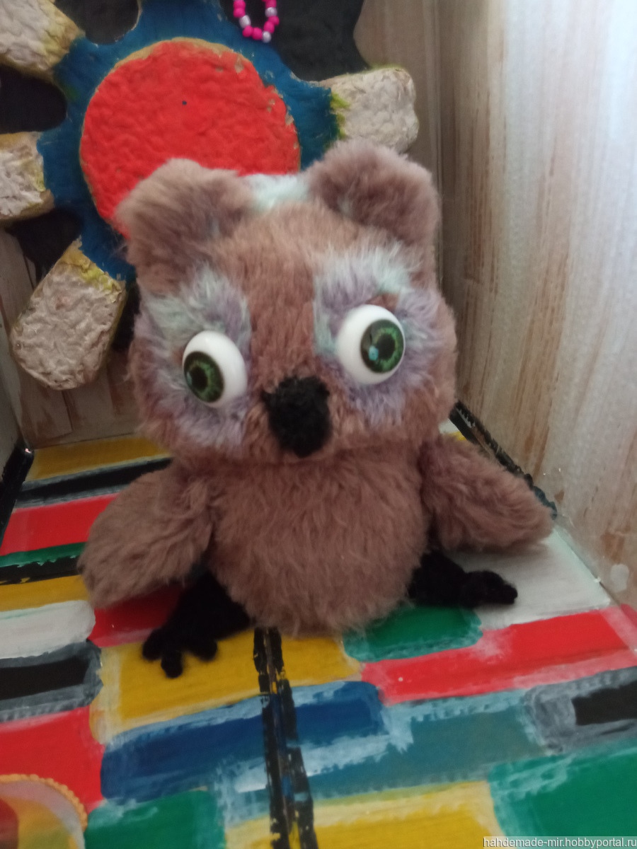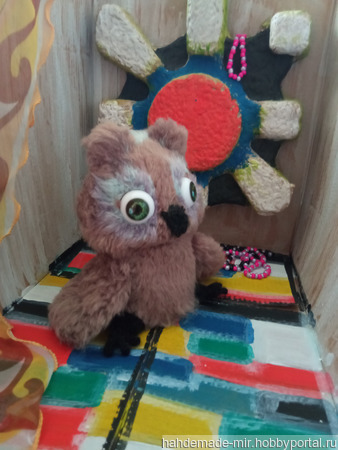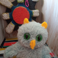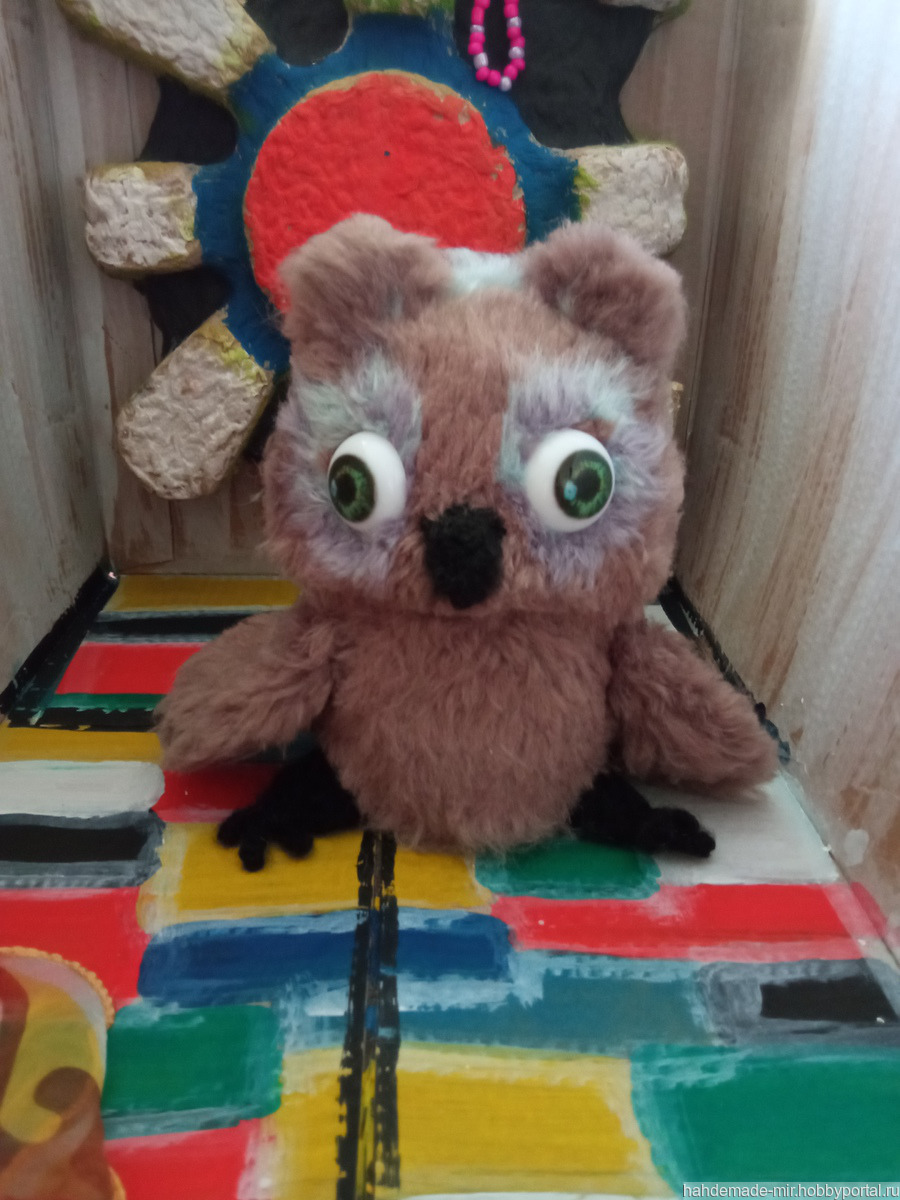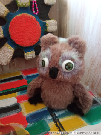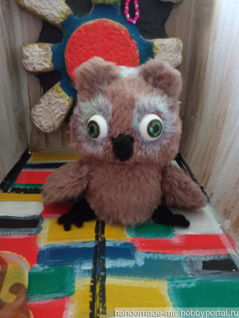 Связан крючком из фантазийной пряжи. Украсит ваш интерьер или станет отличным подарком для любителей изделий ручной работы. Наивный взгляд совенка не оставит равнодушным ни взрослого, ни ребенка)