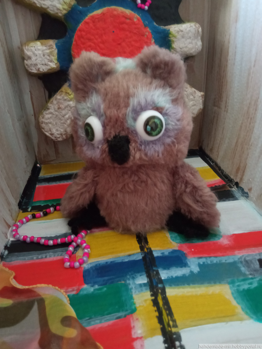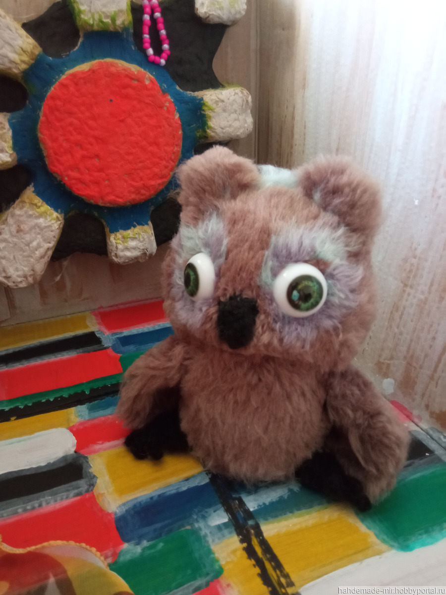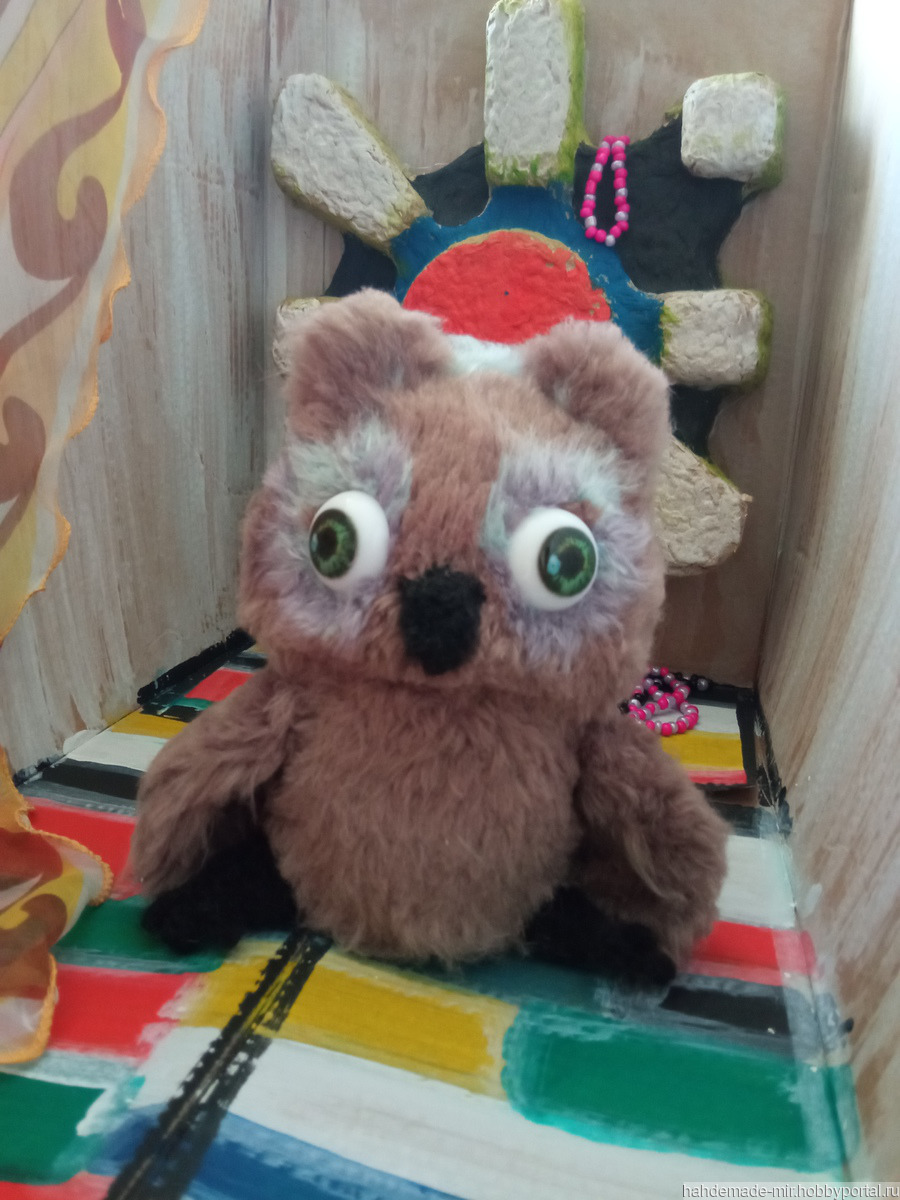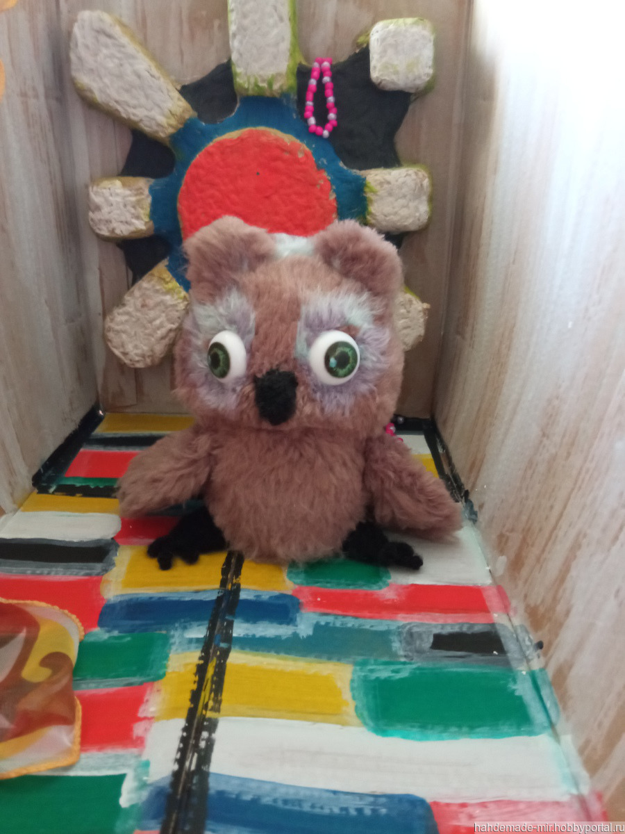 Связан крючком из фантазийной пряжи. Украсит ваш интерьер или станет отличным подарком для любителей изделий ручной работы. Наивный взгляд совенка не оставит равнодушным ни взрослого, ни ребенка)