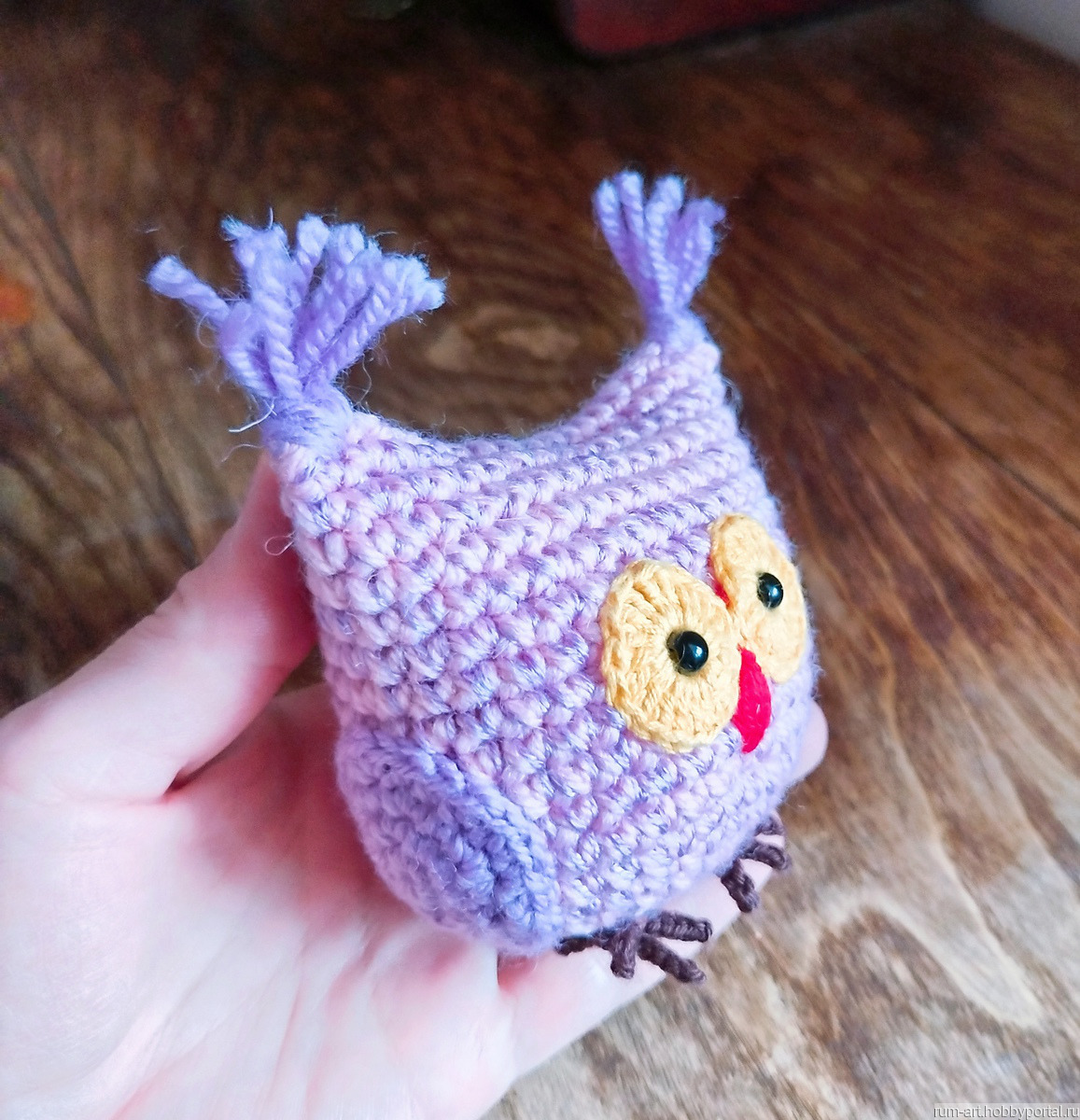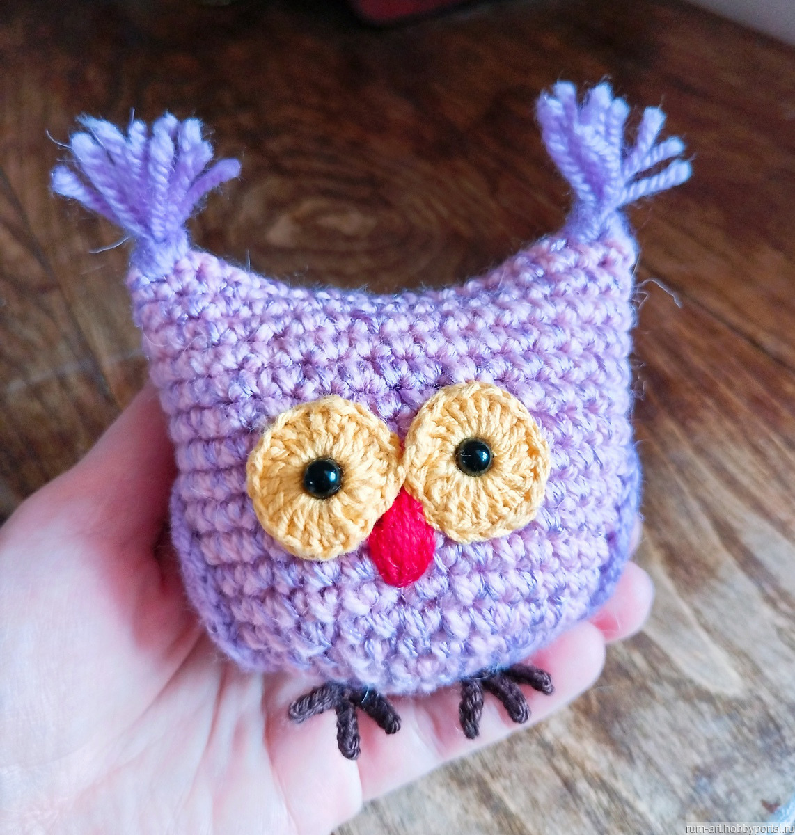 Совушка игрушка мягкая связана из пряжи акрил с хлопком.
