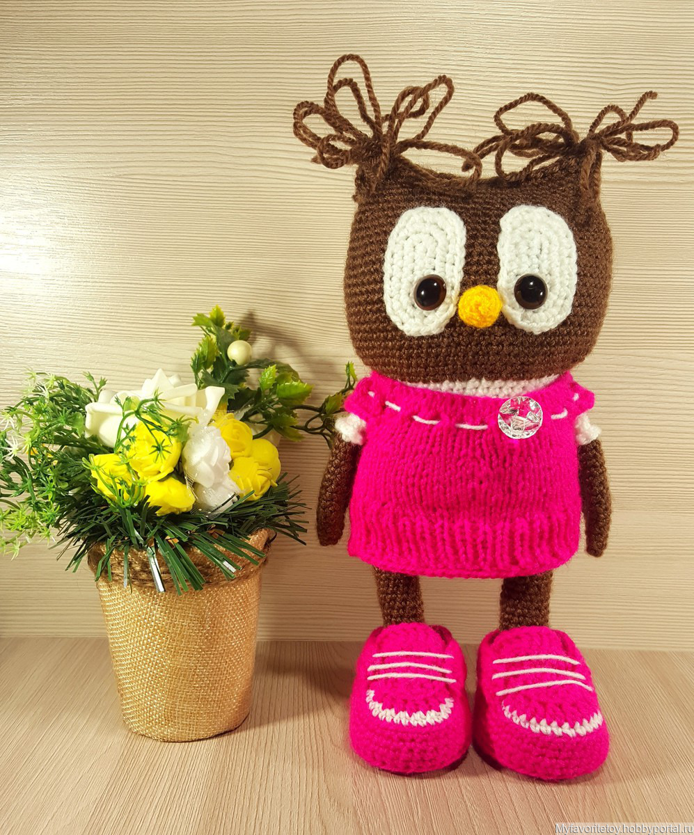 Игрушка Совушка ручной работы отличный подарок для ребенка, а так же для взрослого. Игрушка выполнена из гипоаллергенной пряжи и наполнителя, глазки на безопасном креплении, что дает уверенность , что ребенок не проглотит маленькую деталь. Рост игрушки 24 см., самостоятельно стоит, Платье не снимается. Игрушка в наличие.