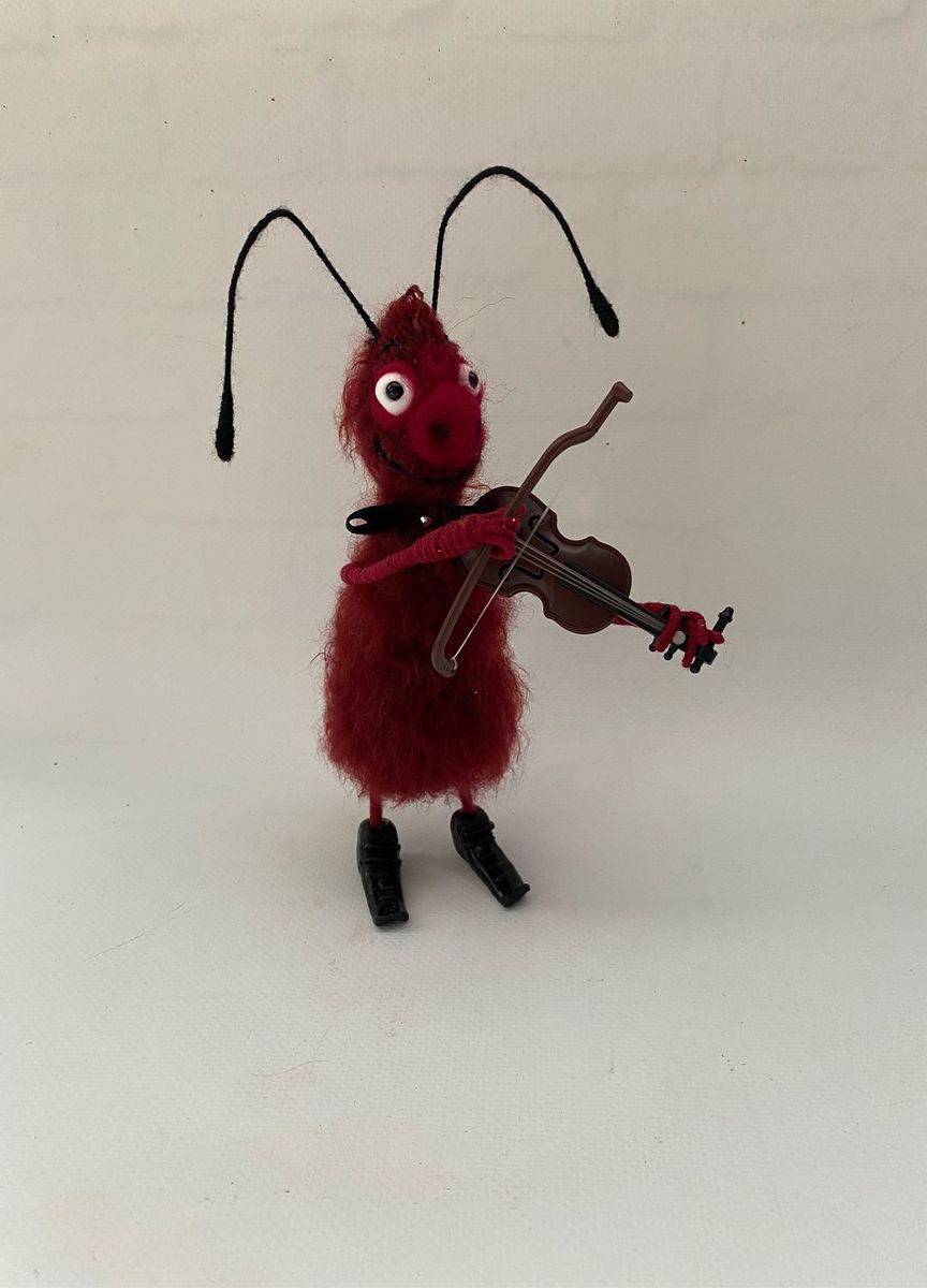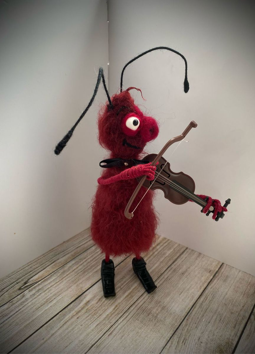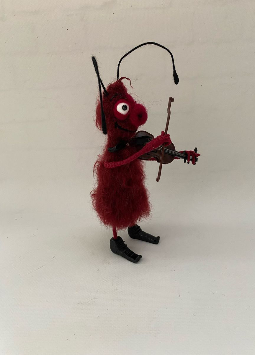 Рост 17 см без учета усиков, стоит самостоятельно, проволочный каркас, голова на шплинтовом соединении