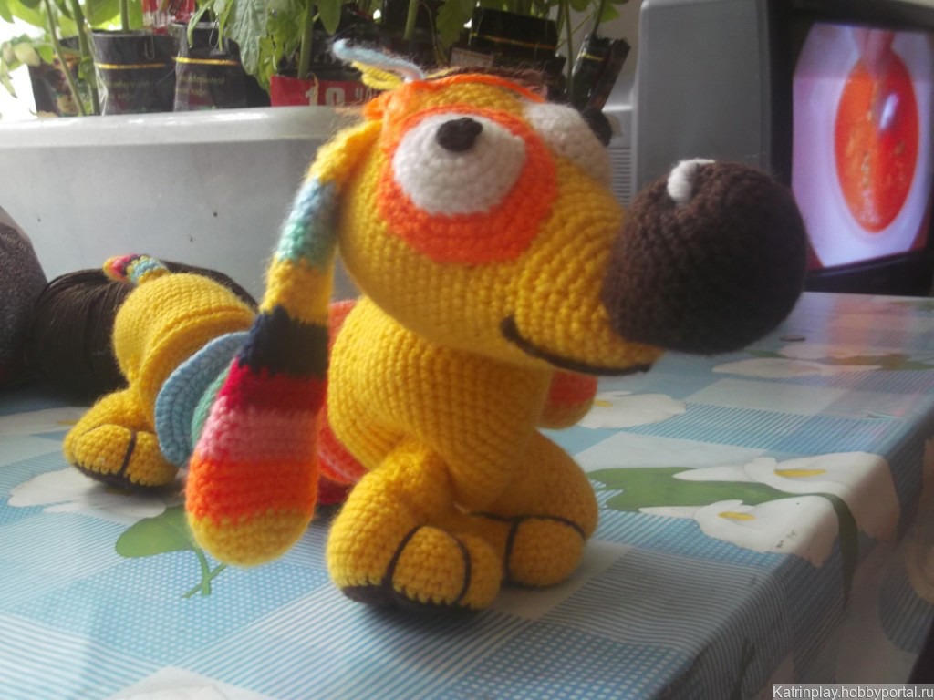 Вязаная такса. Матерьялы :Пряжа Детская пехорка.Наполнитель синтепон.Размер от носа до хвоста 25см.
