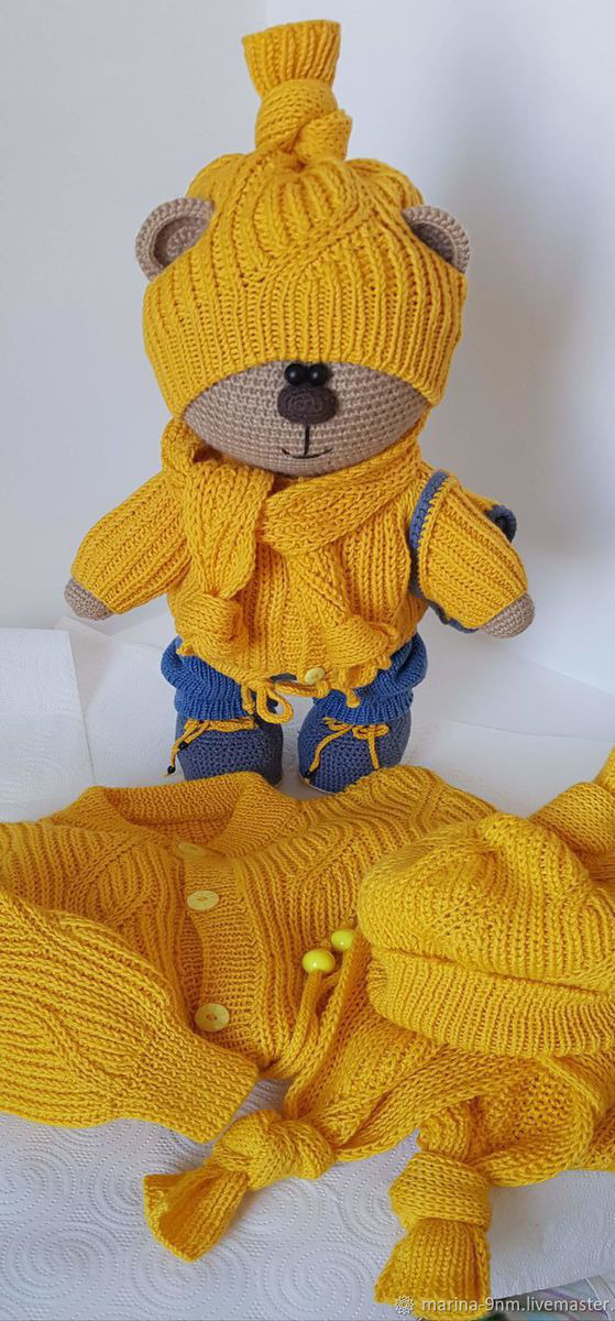 Милый добрый мишка. Хороший друг для Вашего малыша. Выполнен из натуральных материалов. Рост 30-32 см, самостоятельно стоит и сидит. Одежда вся снимается. В комплекте с мишкой одежда для малыша:кофточка и шапочка. А также можно создать комплект по Вашему желанию (свитер, кофточка, плед и т.д.)