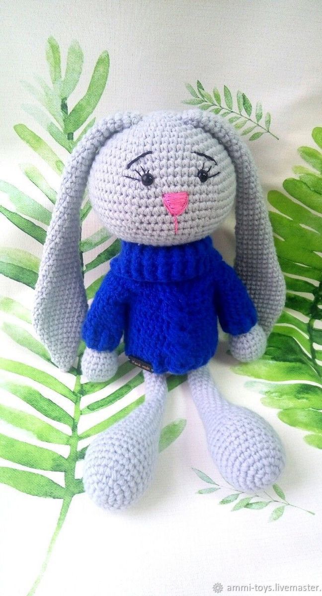 вязаная игрушка, игрушка ручной работы, hand made, животные, игрушки, детям, зайцы, мягкая игрушка заяц, вязанные, работы