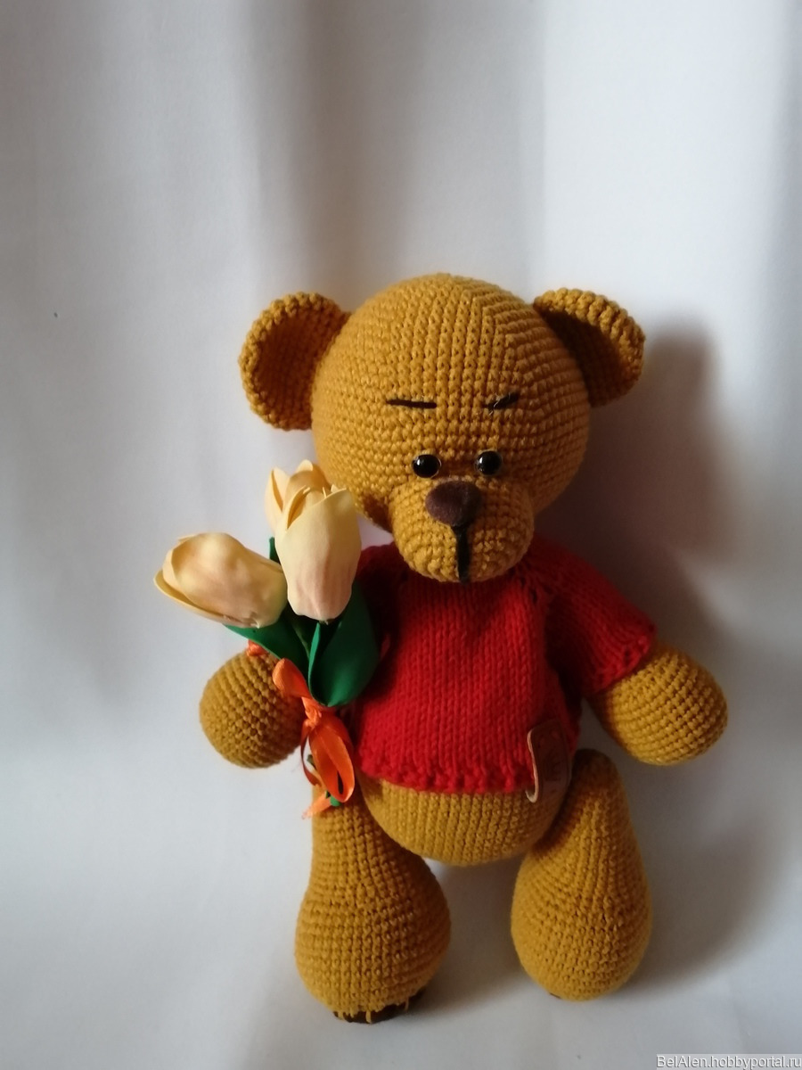 Игрушка выполнена крючком , пряжа 100% хлопок, наполнитель Файбертек. Все лапки двигаются,безопасное скрытое внутреннее крепление, глазки и носик тоже на безопасном креплении.