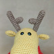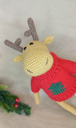 Вязаный забавный лось станет отличным подарком ребенку или сувениром взрослому.