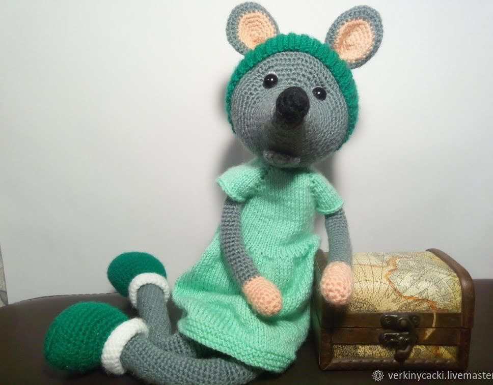 Платье мышки съемное и выполнено из той же пряжи, что и сама мышка. Это позволяет менять наряд и создавать новые образы для вашей игрушки. Мышка очень игривая и забавная , она станет отличным компаньоном для детей и поможет им развивать фантазию и воображение.