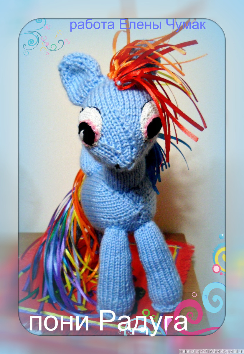 Яркая мягкая безкаркасная игрушка из любимого малышами мультфильма связана из гипоалергенных ниток и наполнена холофайбером. Оформление гривы и хвоста игрушки из атласных ленточек. Рост игрушки 30 см.Возможен вариант исполнения из других ниток на выбор.