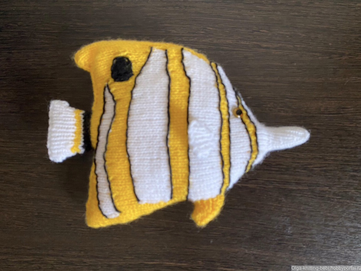Точная копия тропической рыбы-бабочки. Игрушка связана из качественной пряжи. Есть в наличии другие рыбы .