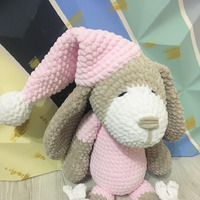 Вязанная игрушка. Собака. Высота 42 см. Ручная работа. Пряжа плюшевая. Наполнитель специальный для игрушек, гипоаллергенный. После стирки не деформируется. Игрушка без твердых деталей, глаза и нос вышиты.