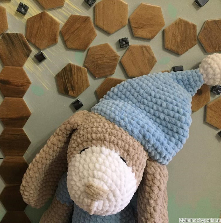 Вязанная игрушка. Собака. Высота 42 см. Ручная работа. Пряжа плюшевая. Наполнитель специальный для игрушек, гипоаллергенный. После стирки не деформируется. Игрушка без твердых деталей, глаза и нос вышиты.