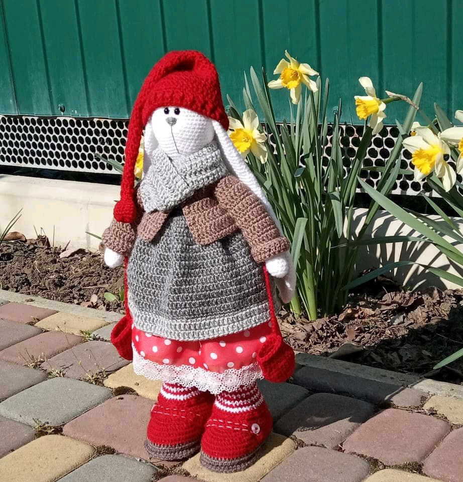 вязаная игрушка, игрушки ручной работы, игрушка крючком, вязаная зайка, зайка тильда, тильда зайка, зайка в стиле тильда, игрушки тильда