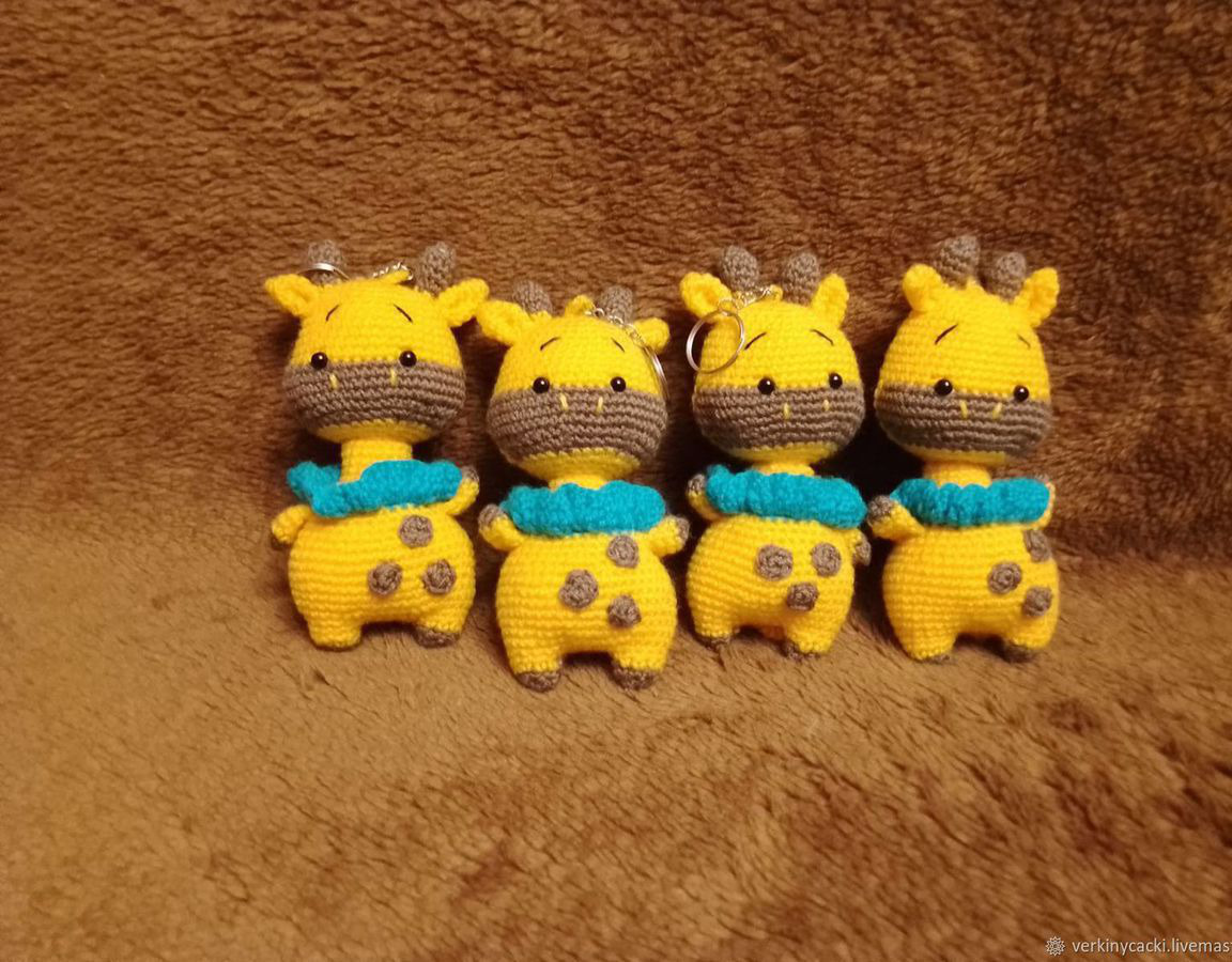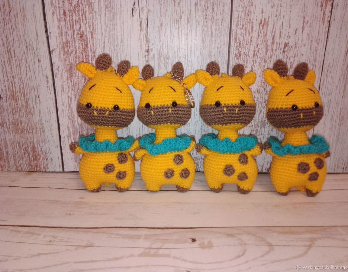 Уникальные вязаные брелочки жирафики размером от 11 до 14 см, выполненные вручную, станут прекрасным дополнением к вашему аксессуару или стильному брелоку. Проявите свою индивидуальность с ручной работой, которая дарит неповторимое очарование в повседневной жизни.