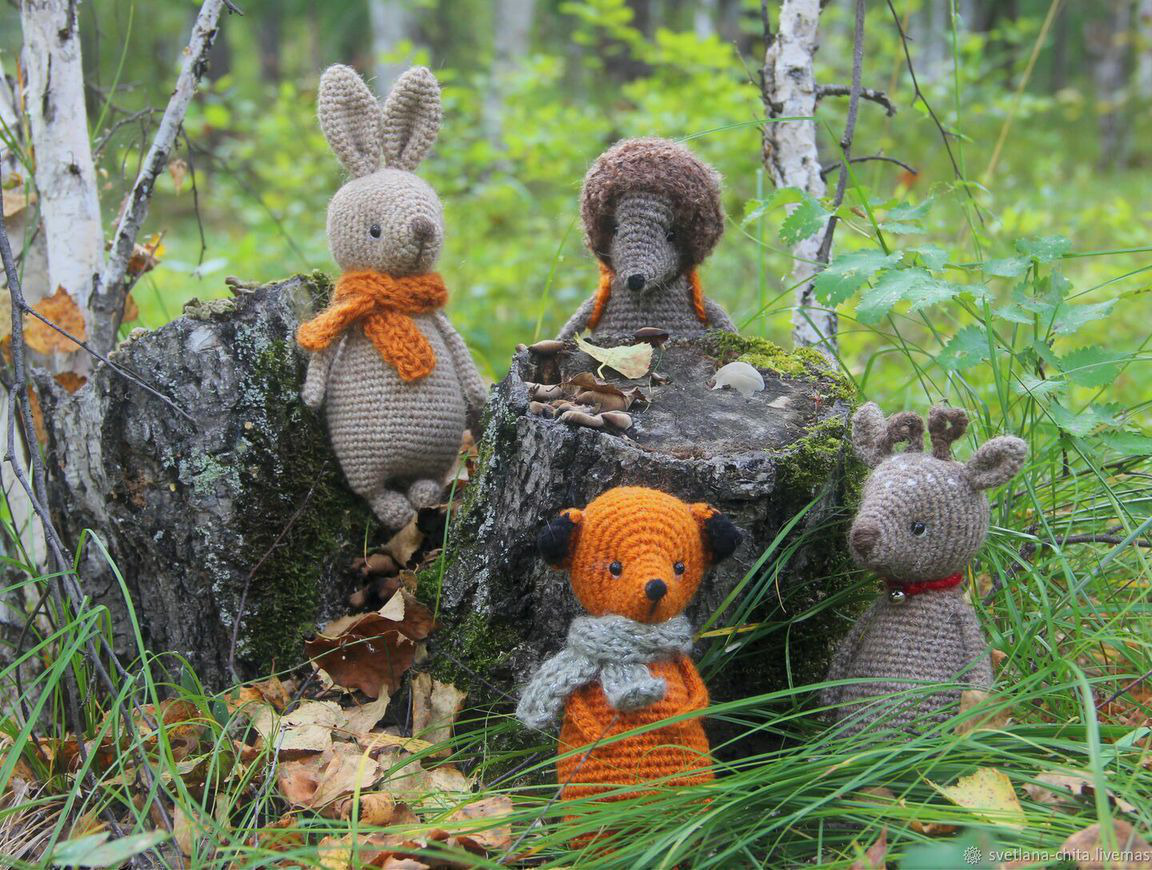 Зверики связаны из 100% шерстяной пряжи. Вязание крючком. Графики, сумочки и пр. Суящаны спицами из полушерстяной нити. Возможно исполнение в других вариантах, ч одеждой, в других цветах и т.п Цена указана за 1 зверька.