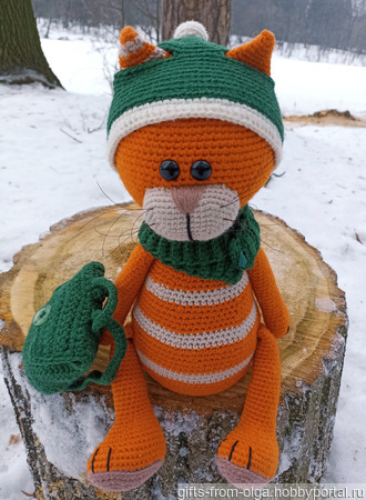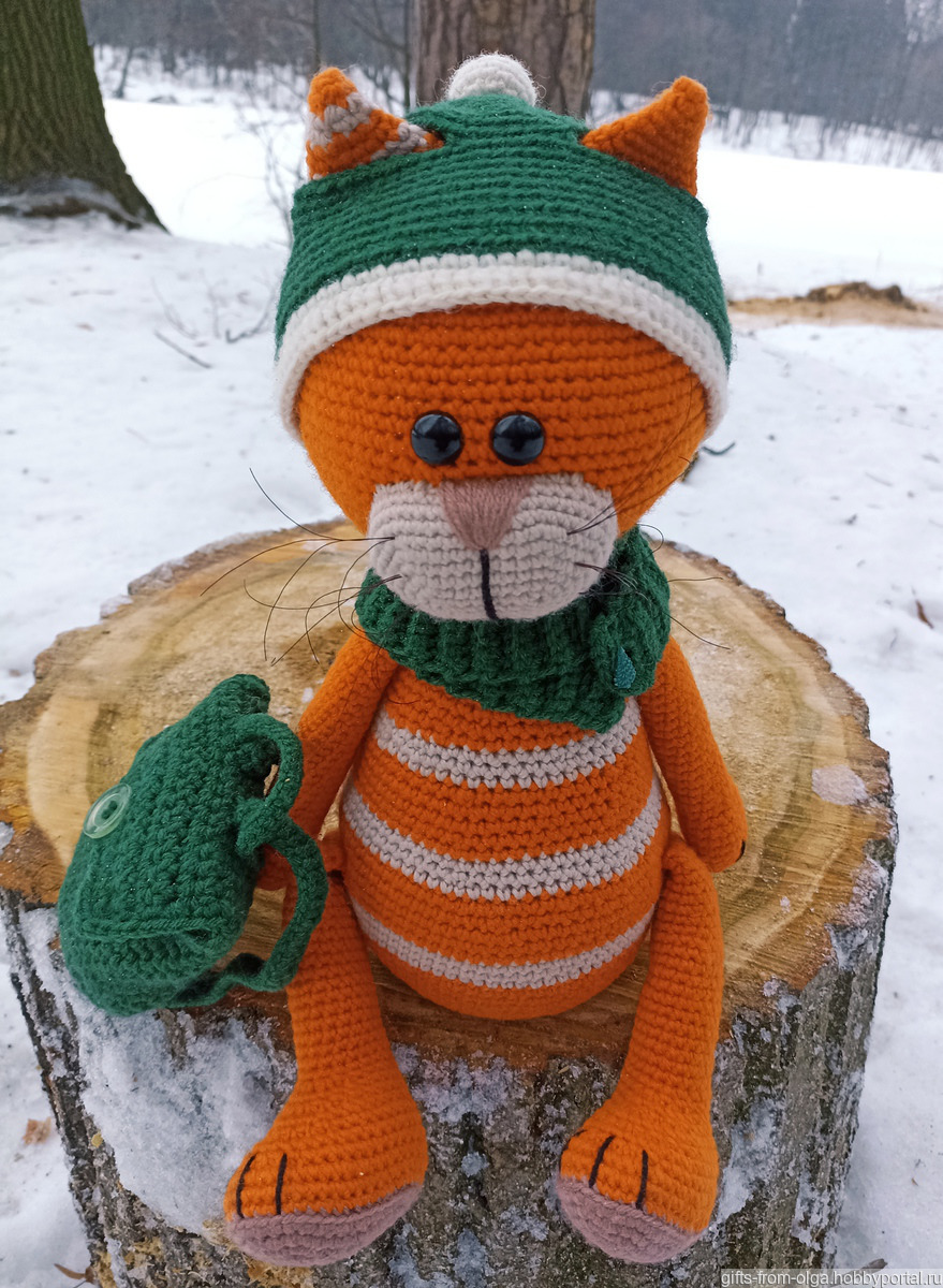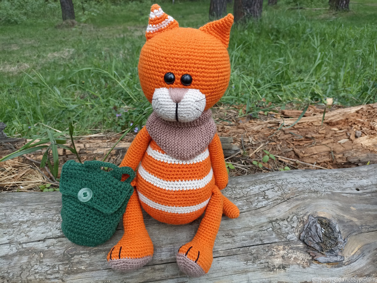 Вязаный рыже-полосатый кот с большим приданым в комплекте: