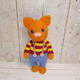 Этот кот связан крючком, имеет рост 25 см и выполнен из мягкой акриловой пряжи. Он наполнен безопасным синтепухом, у него есть безопасные глазки, которые добавляют ему очарования.
