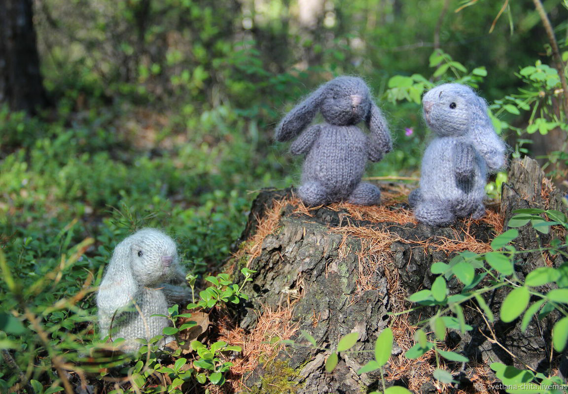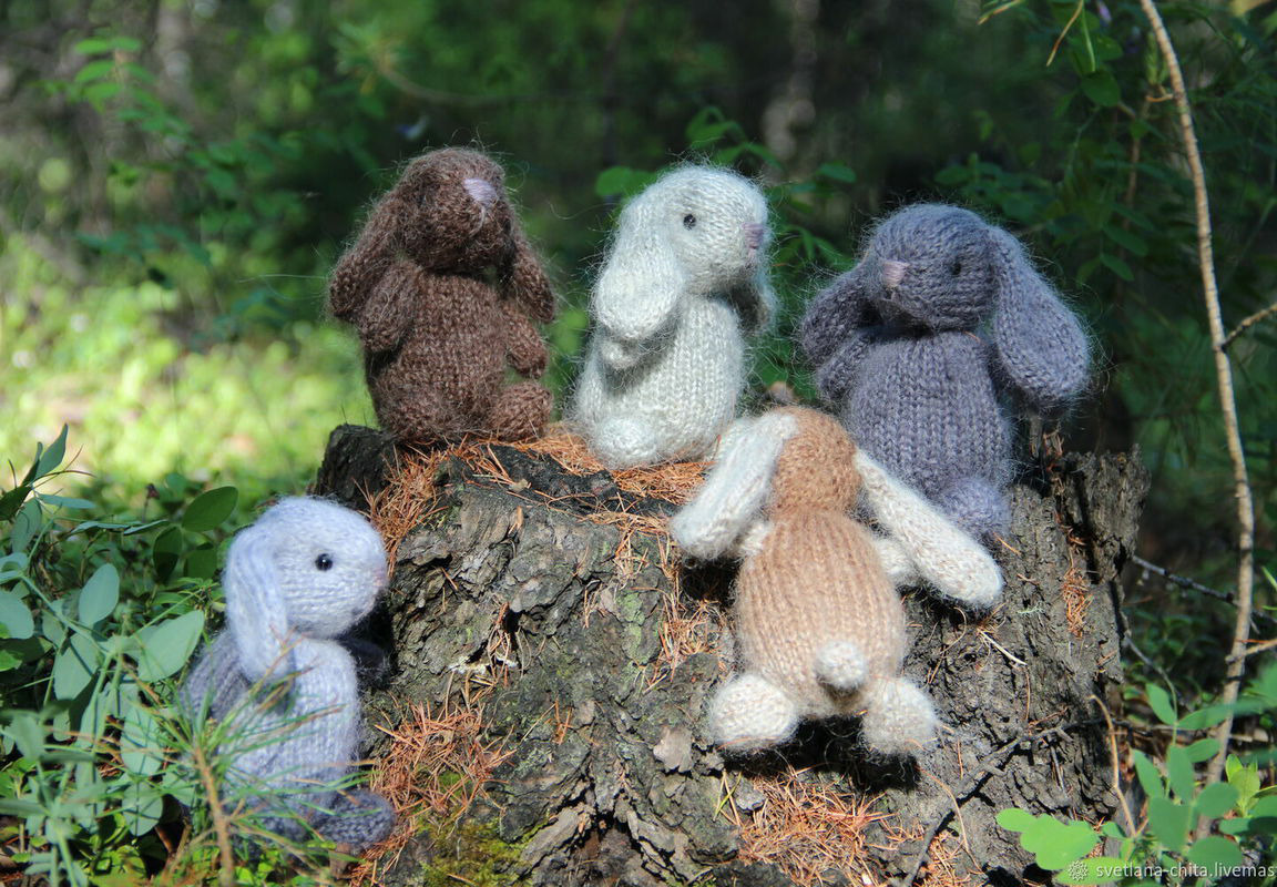Кролики связаны из мохеровой ниточки. Милая игрушка может быть приятным подарком для ребенка и взрослого. Размер около 12 см. На заказ возможны разные цвета, любое количество. Закажите заранее символ года - 2023.