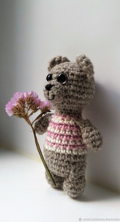 Маленький вязаный Мишка, игрушка-малышка. Карманная игрушка для милых малышей.