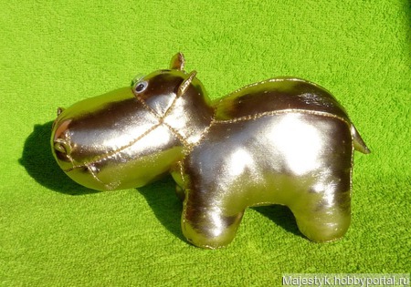 игрушка, мягкая игрушка, выкройка мягкой игрушки, выкройка игрушки, бегемот, золотой бегемот, бегемот из кожи, выкройка