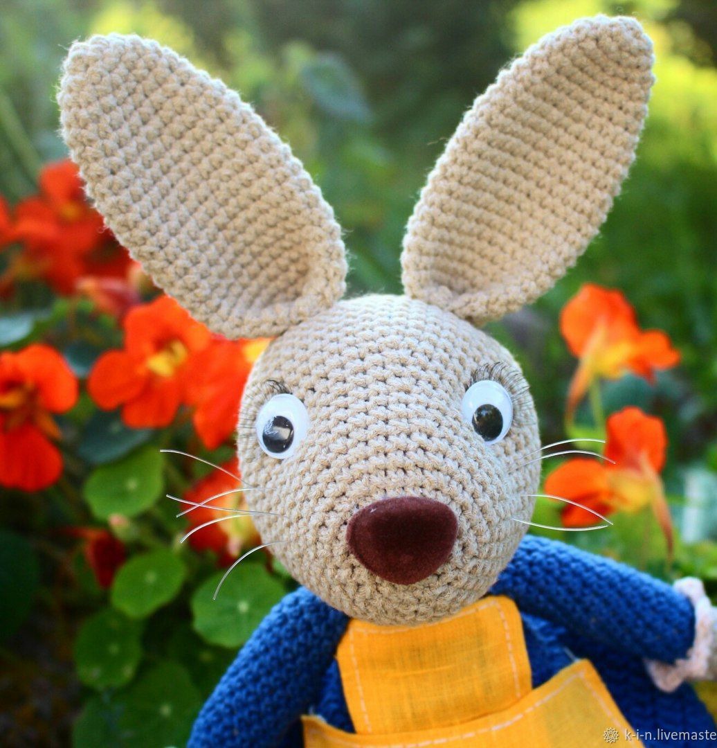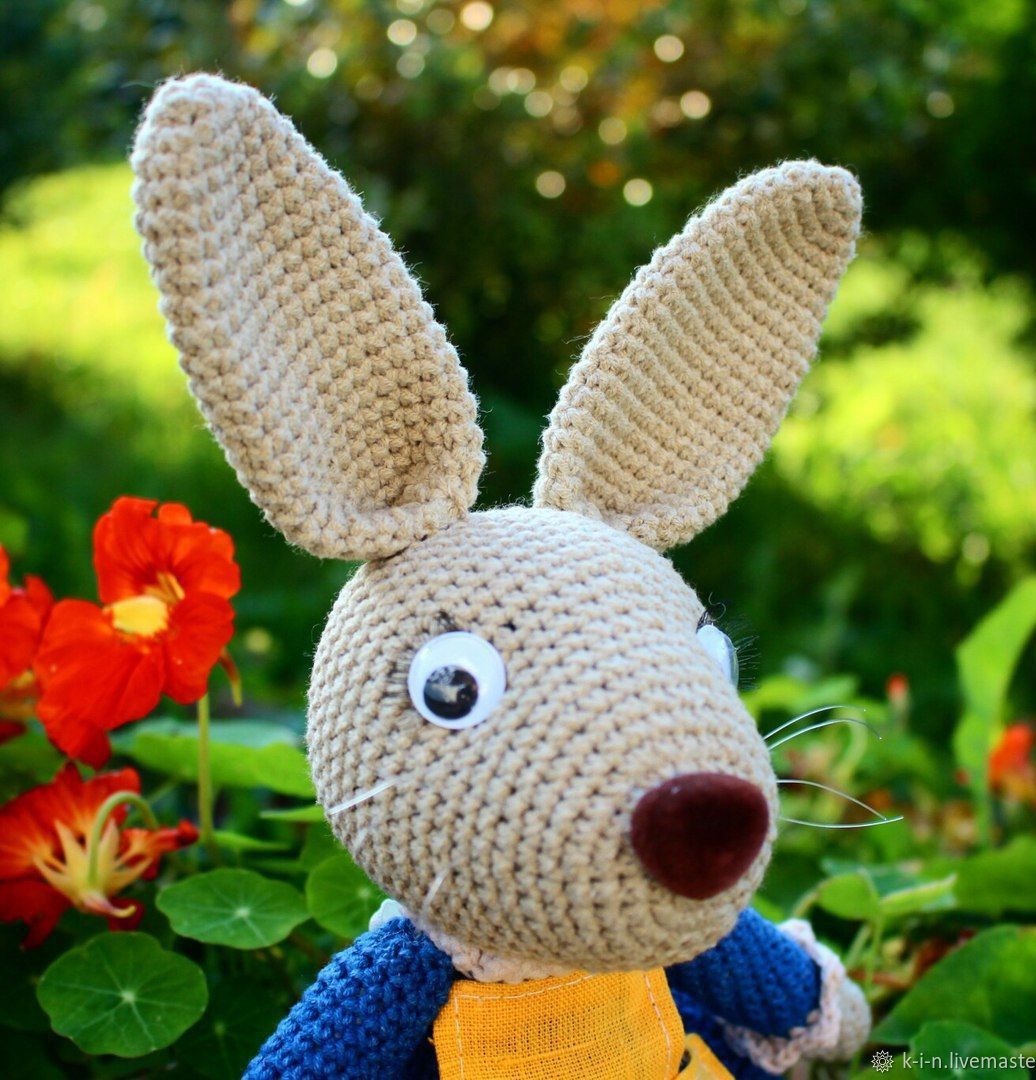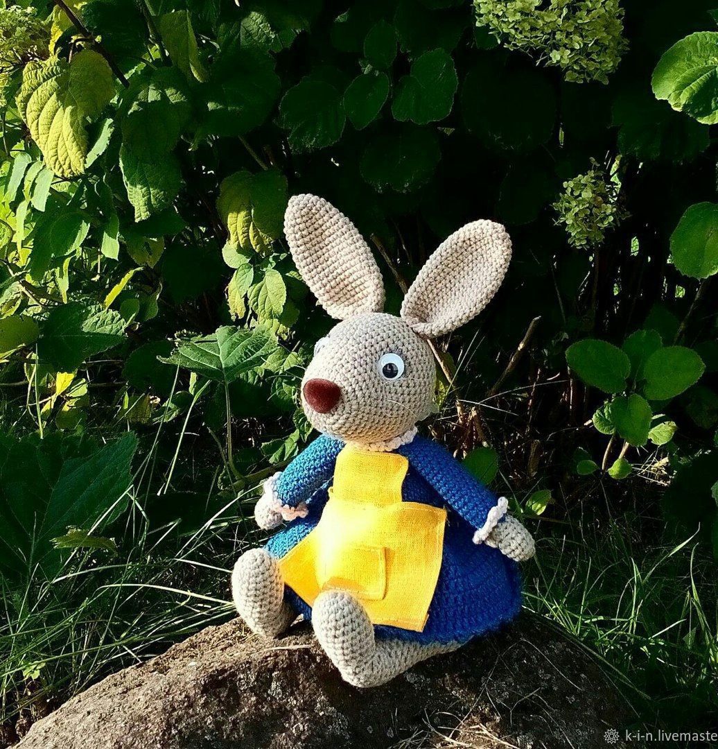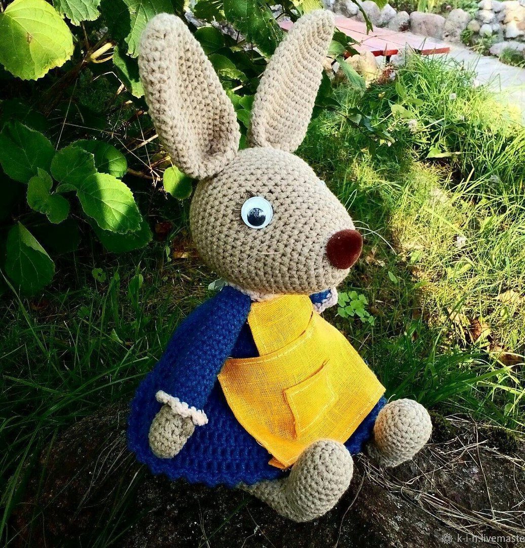 зайка, темно-синий, зайка крючком, заяц игрушка, заяц вязаный
