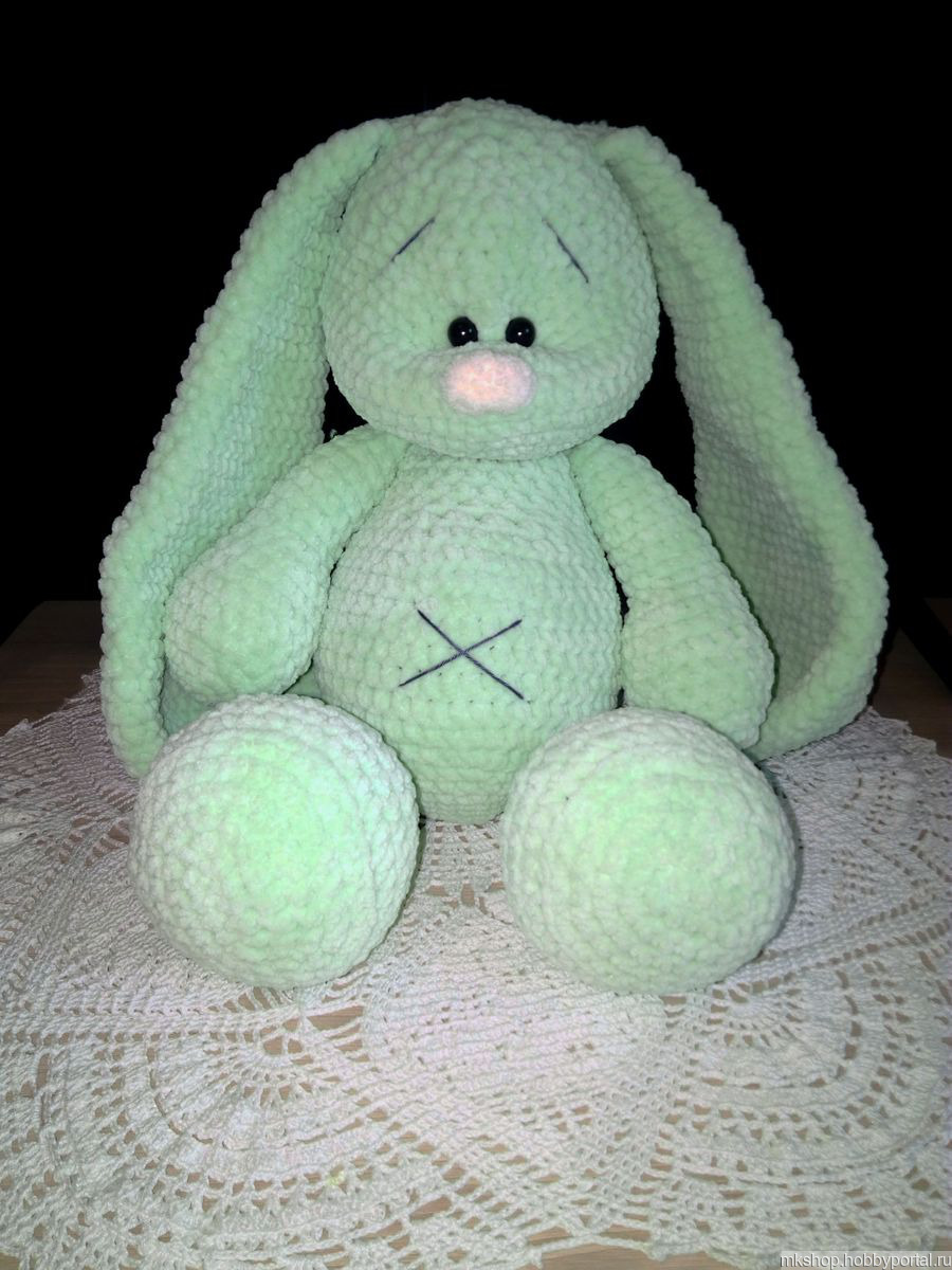 Зайчик связан из гипоаллергенной пряжи, очень мягкий и приятный на ощупь. Возможен повтор в любом цвете и размере