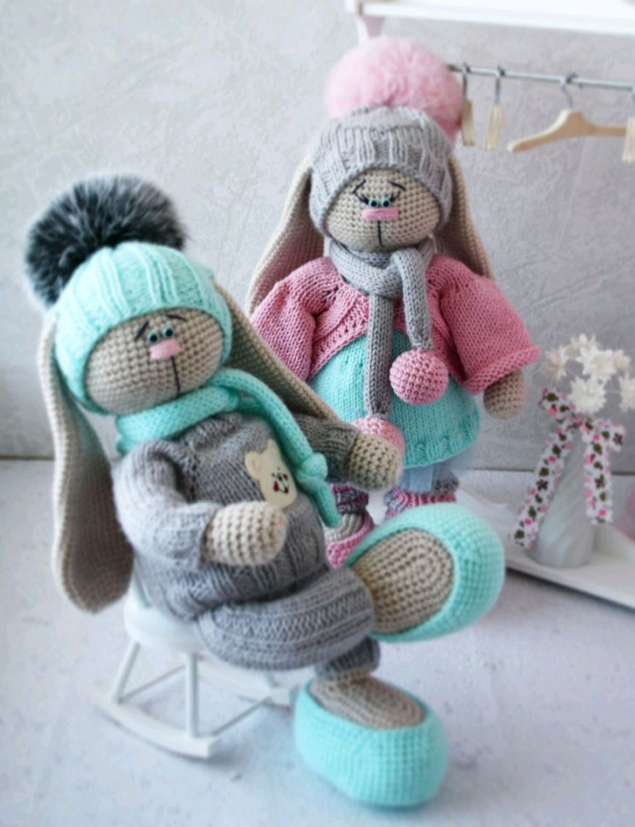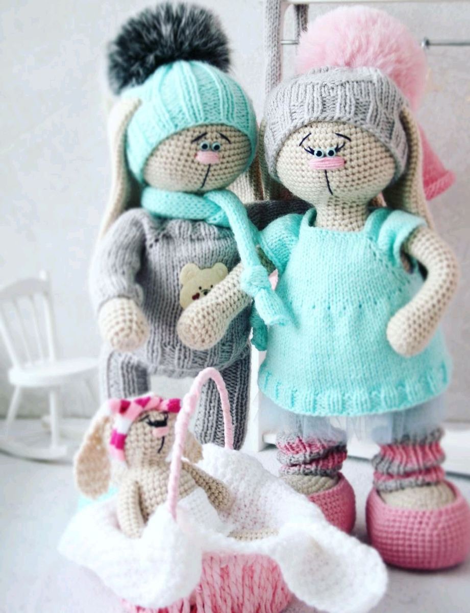 вязаная игрушка, интерьерная кукла, игровая кукла, Игрушка для детей, вязание крючком, амигуруми, вязаный зайчик, вязаный заяц, игровая игрушка
