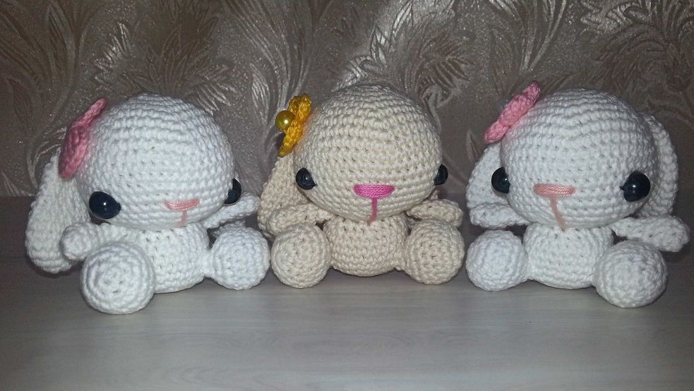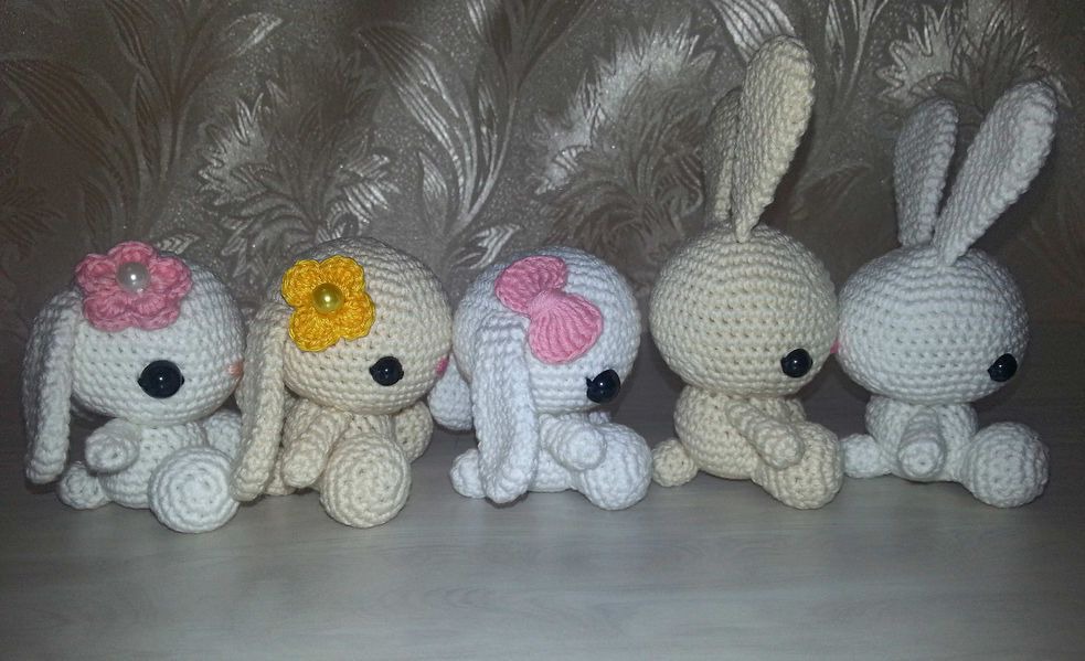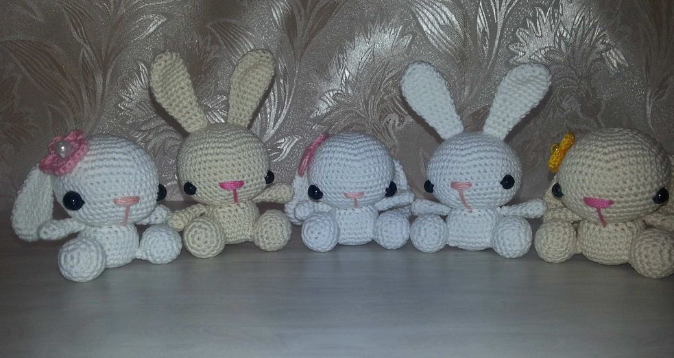 Маленькие зайчата - амигуруми связаны крючком из 100% хлопка. Замечательный подарок близким и друзьям на любой праздник и просто так. В наличии могут быть не все цвета, представленные на фото. Игрушки, сделанные своими руками, хранят тепло и частичку души мастера.