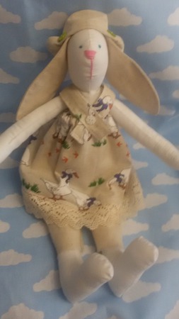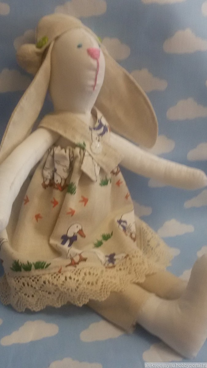 Зайцы Тильды мальчик в штанишках и девочка в сарафане.