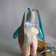 Замечательный зайка в модной одежке, в нежной цветовой гамме подарит радость своей новой хозяюшке. Выполнен зайка из натуральных тканей, одежка не съемная, уверенно стоит, пуговичное крепление конечностей, рост 20 см.