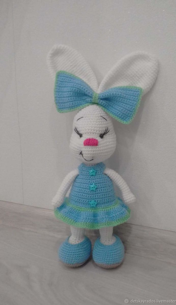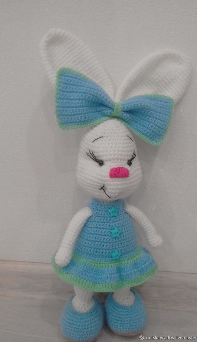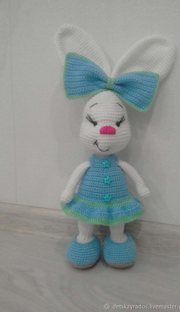 игрушка, зайка, подарок, детям, комбинированный, игрушка крючком, 8марта подарок