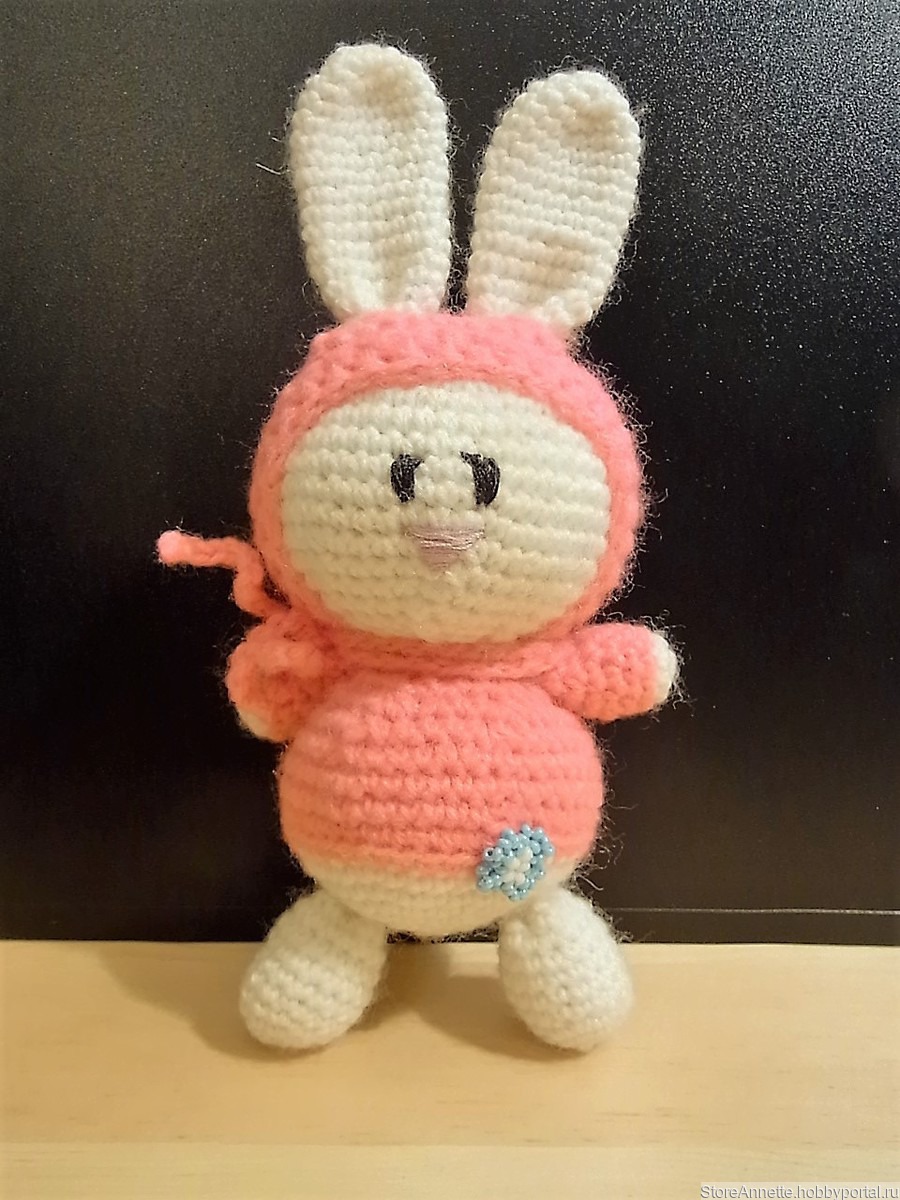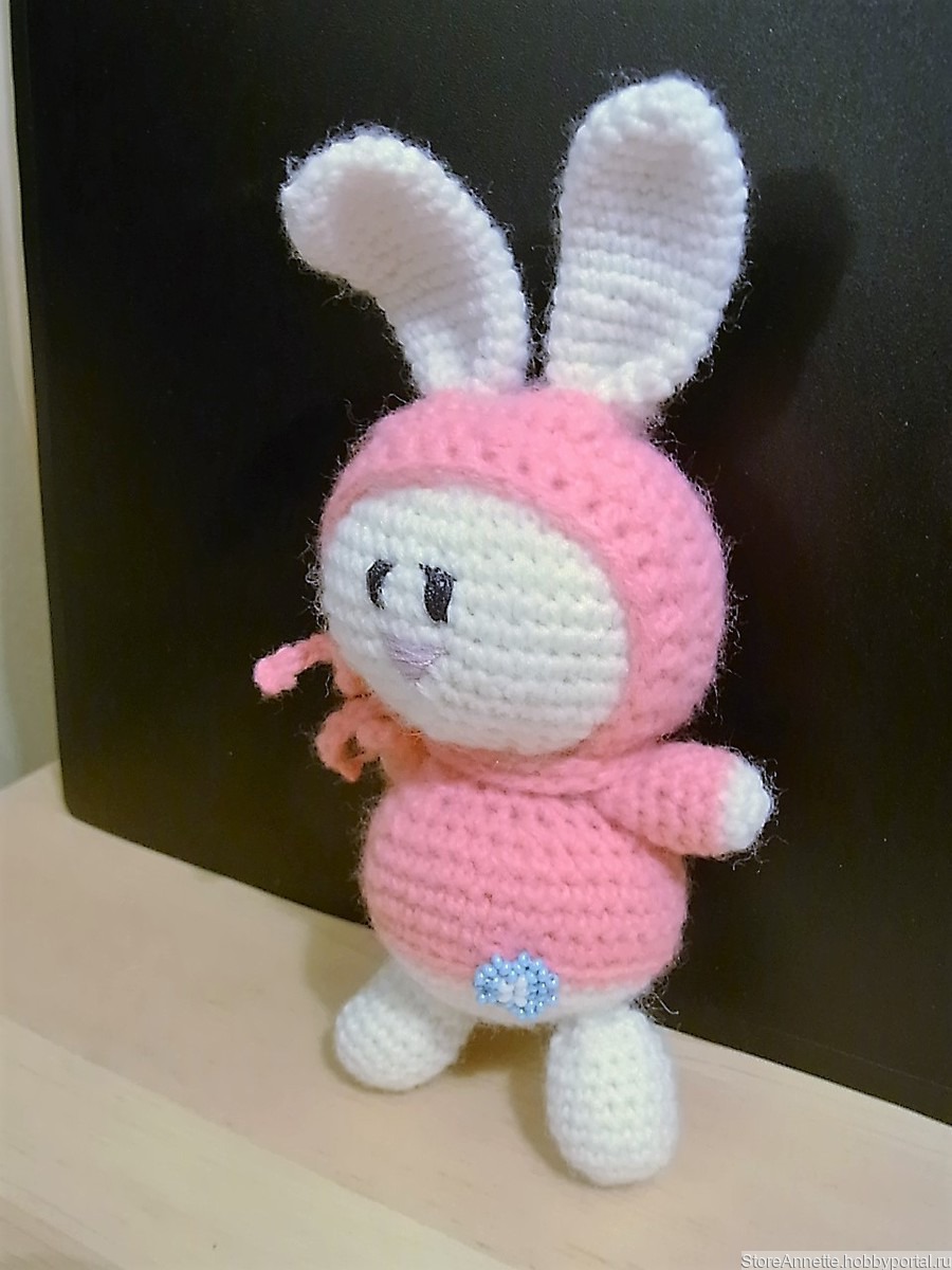 Вязанный Зайка мини, высота около 7 см. Цветочек из бисера.