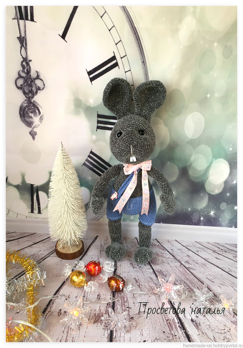Зайка плюшевый . Прекрасный подарок как ребенку , так и взрослому . Связан с любовью .