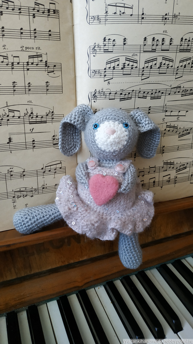 Вязаная Зайка-балеринка создана из безопасных гипоаллергенных материалов, вся одежда снимается, фурнитура на надёжных креплениях. Высота игрушки 20 см.