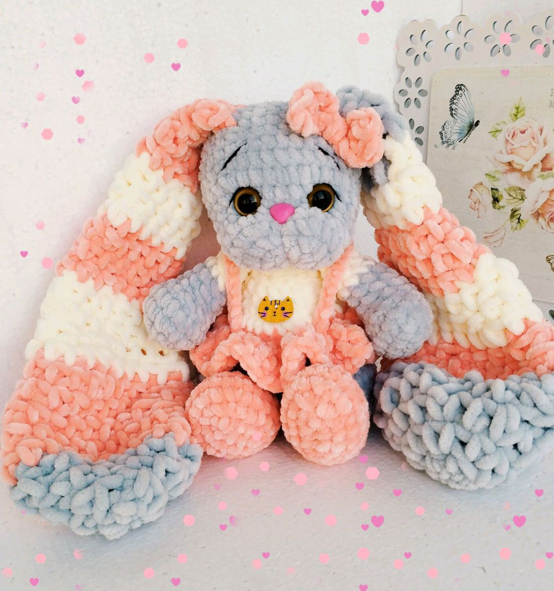 Очаровательная и обаятельная Зайка Бэтти (по мк Анастасии Будаевой) связана из гиппоаллергенной плюшевой пряжи, станет прекрасным подарком не только для детей, но и для взрослых. Длинные зефире ушки никого не оставят равнодушными! Прекрасный подарок в наступающем Новом году!