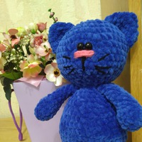 Материал : детская пряжа, холлофайбер, глазки-бусинки, атласная ленточка