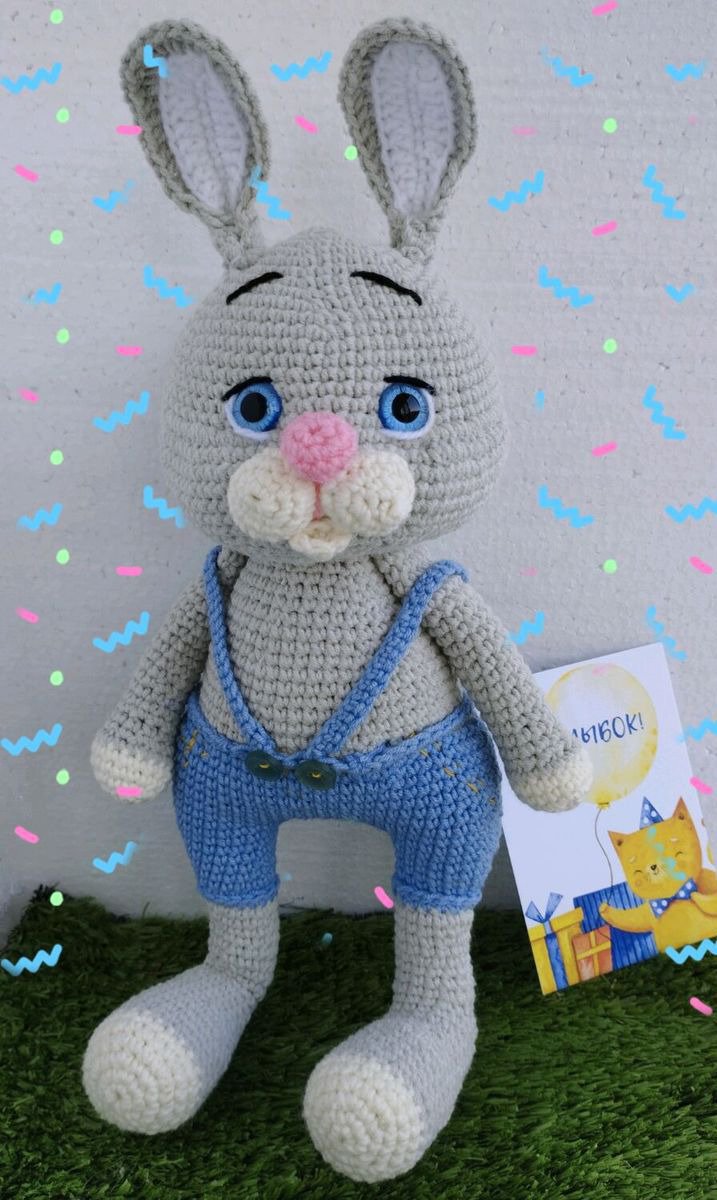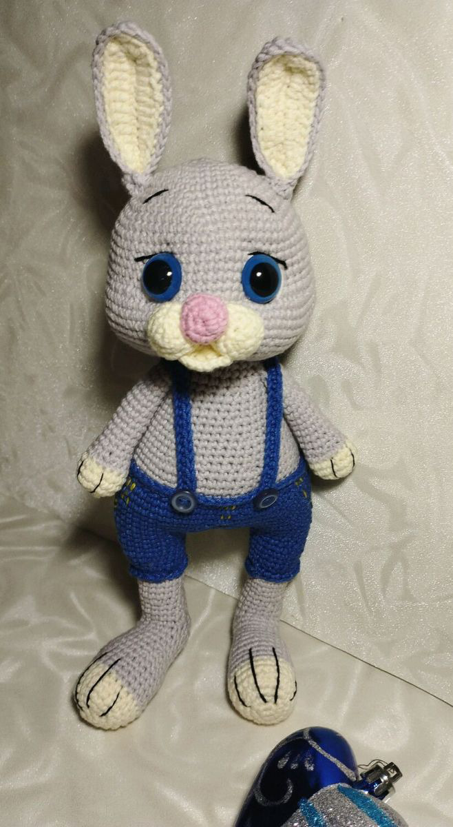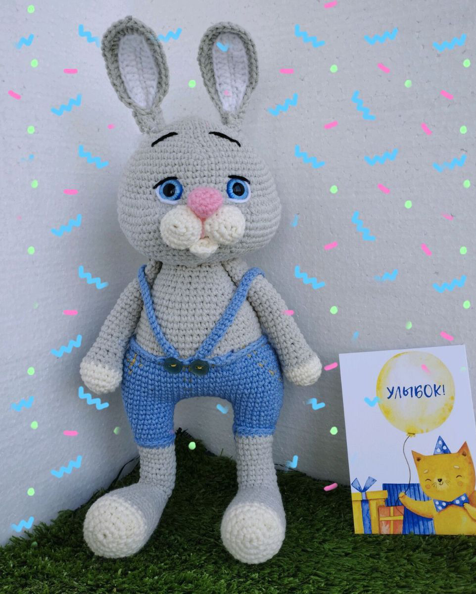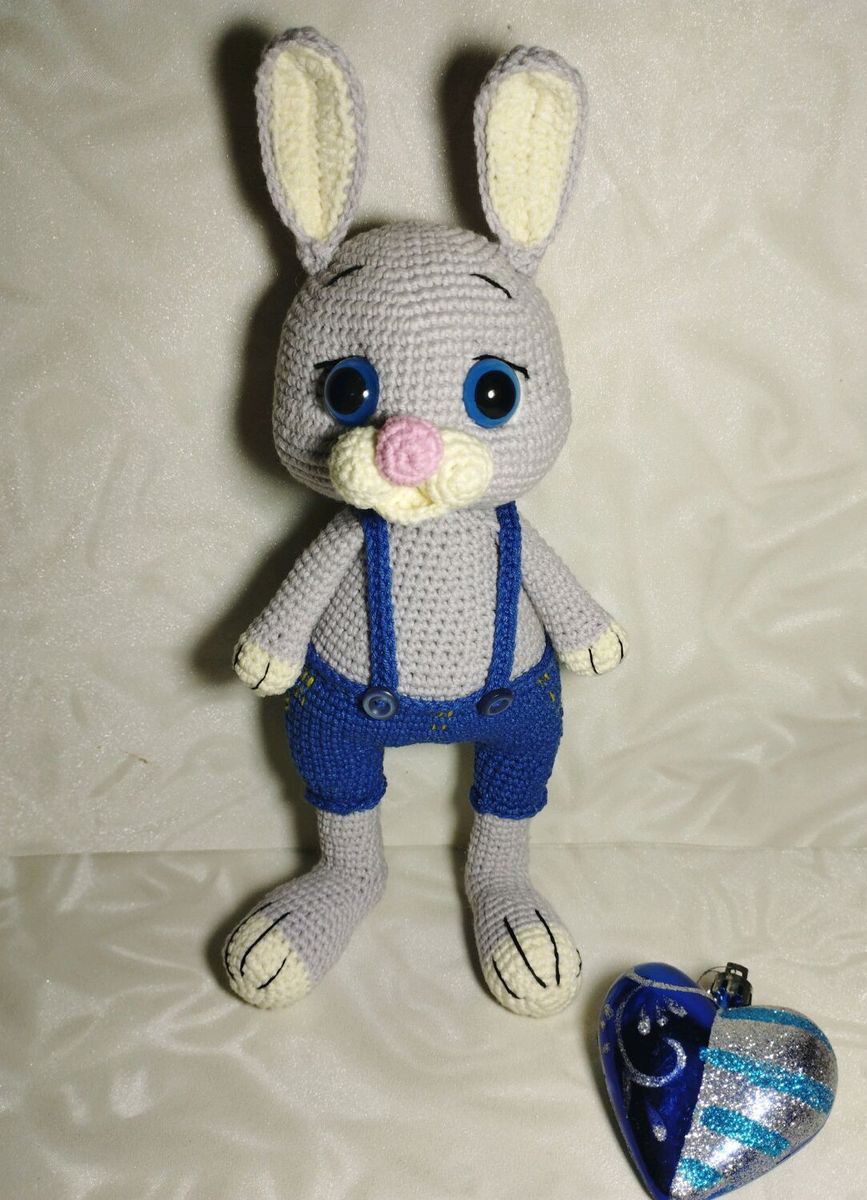 Зайка Пьер, вязаный крючком из полухлопковой пряжи.