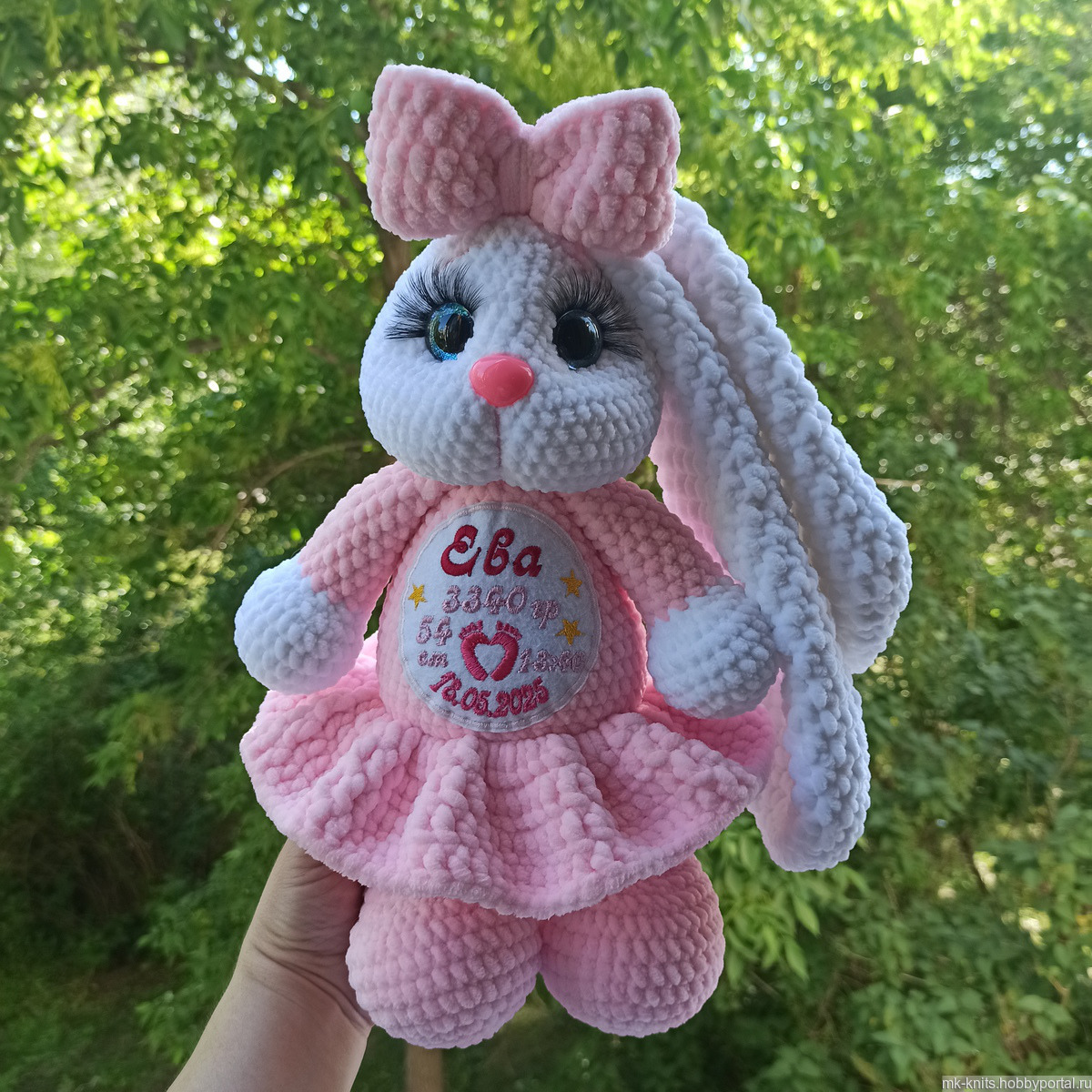подарок девочке, ручная работа, подарок на любой случай, новорожденному, зайка крючком, метрика