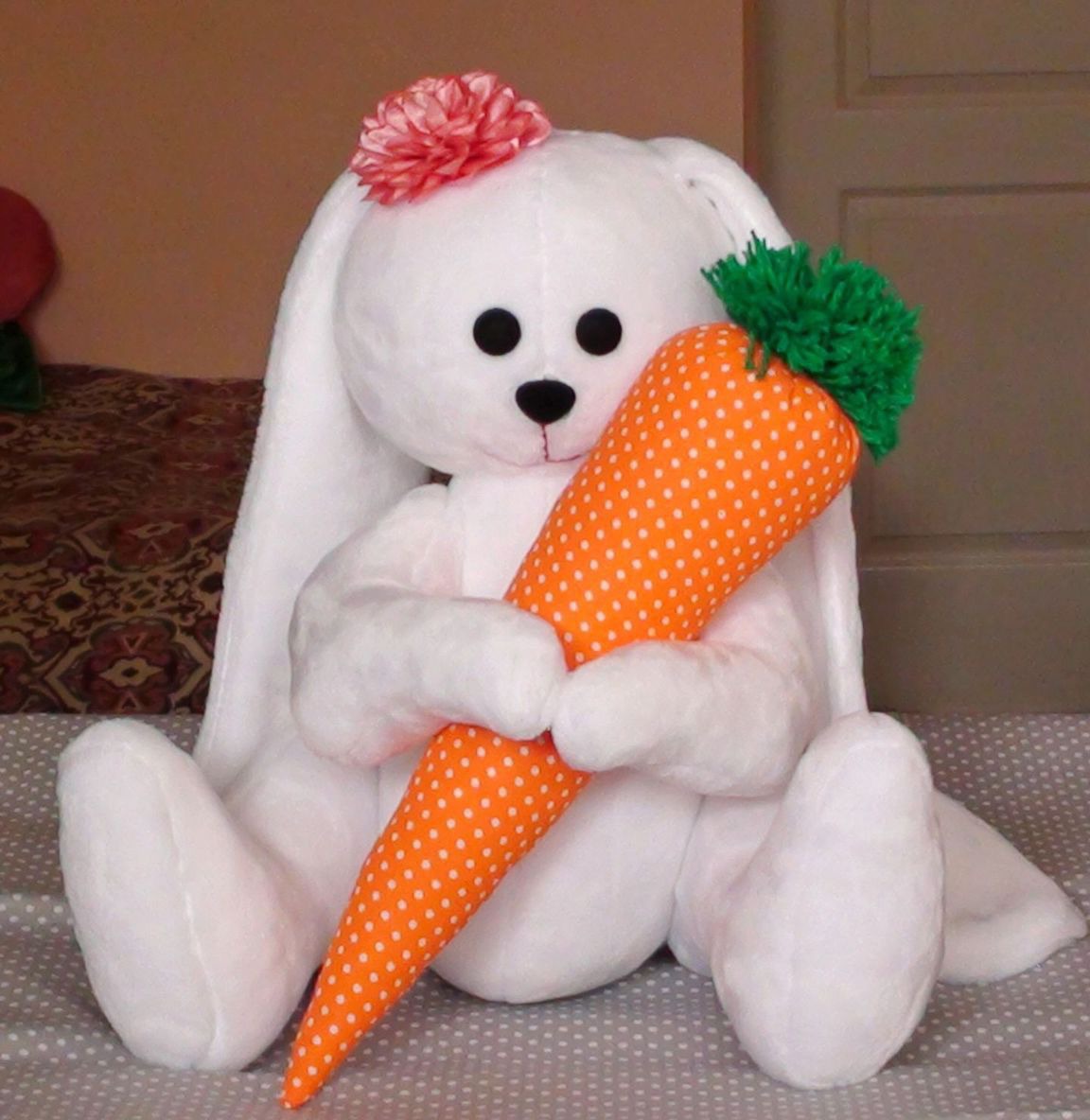 Зайка с морковкой 45 см ручной работы на заказ