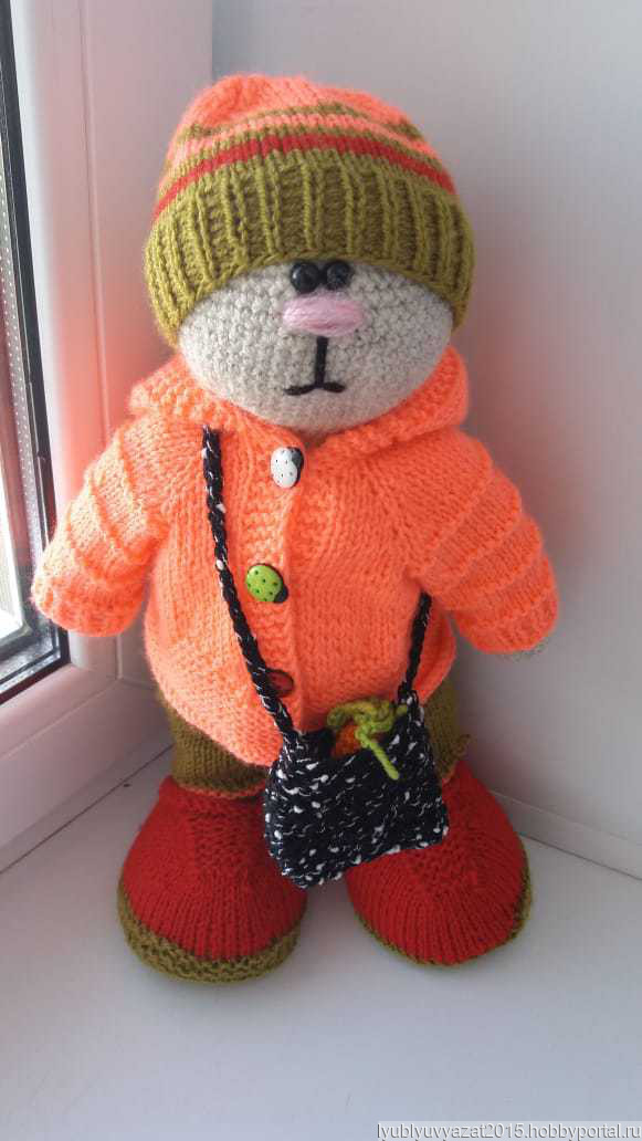Милый зайка ищет новый дом. Он обязательно станет любимцем. Глазки на безопасном креплении. Пряжа гипоаллергенная. Сам может сидеть. Вся одежда снимается. в сумочке морковка.